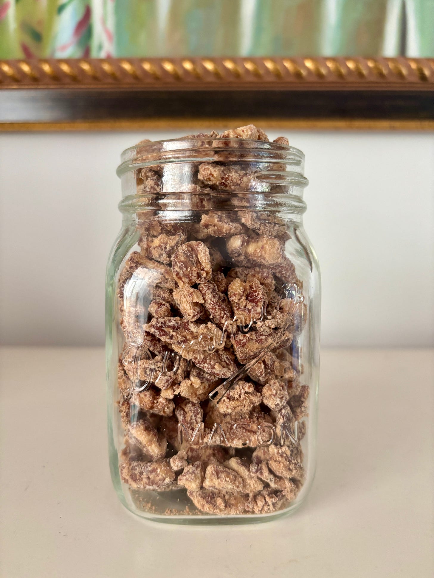 While there are myriad ways to candy nuts, this is hands down my new favorite. The process is quite magical if you’ve never made maple sugar before. When you bring maple syrup to a boil on the stove, the water holding the sugar in solution evaporates, causing crystallization. Add some rich toasted pecans at the right time and they become imbued with maple and encrusted with sparkly maple sugar. A little salt amplifies the flavors.