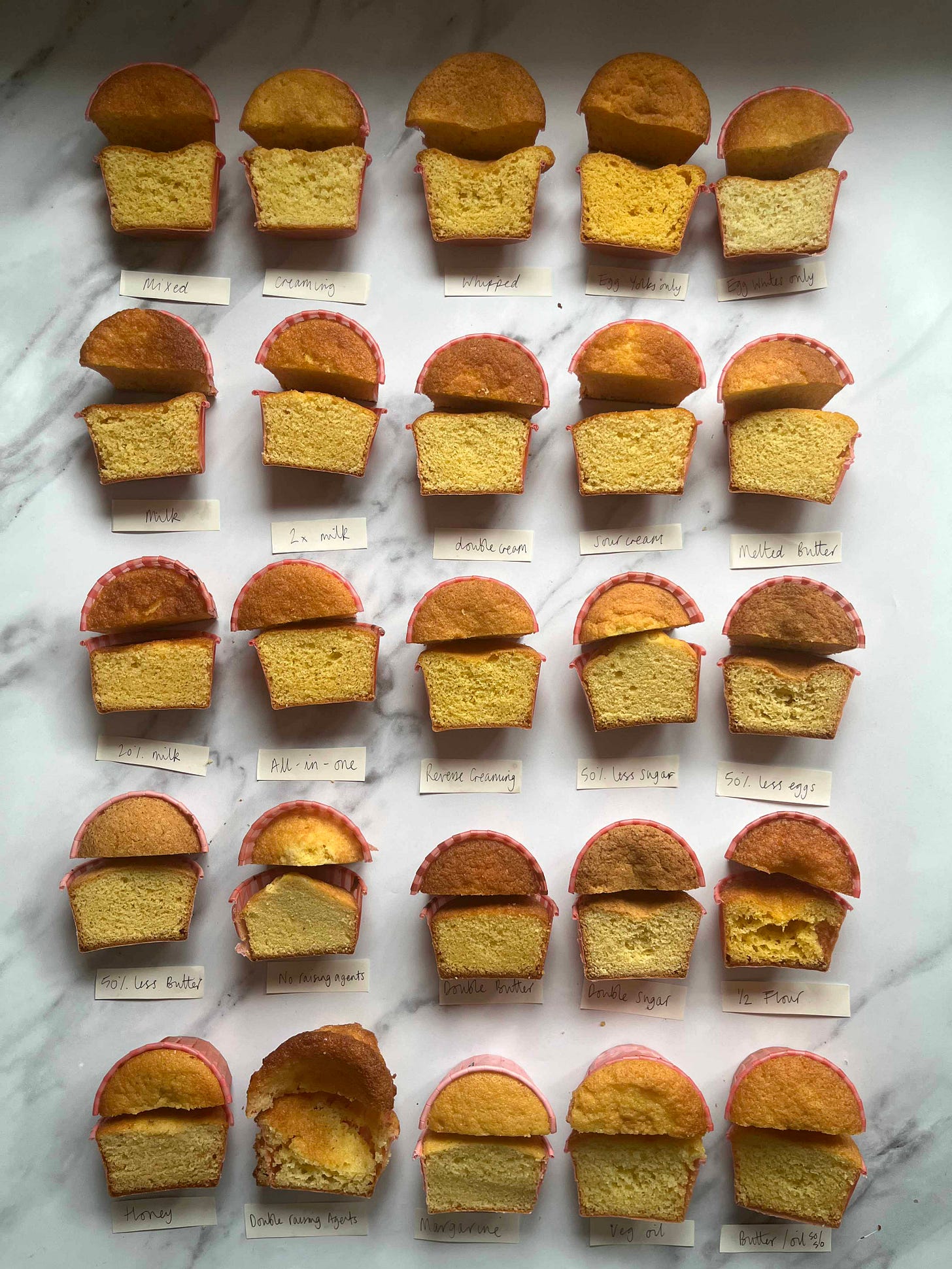 To really put butter cake through its paces, I made a list of all the factors that could affect the outcome of a sponge, from mixing method to level of creaming and more. We’ll go through those in detail, but here are the controls: