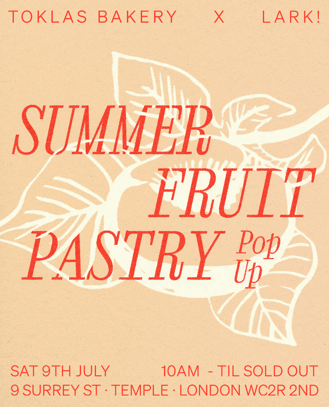 When I'm not writing Kitchen Projects and doing development, I love to dream up fun food events for my pop-up bakery Lark! and figure out ways I can collaborate with some of my favourite chefs. Next week, I have the absolute pleasure of baking and cooking at Toklas bakery.
