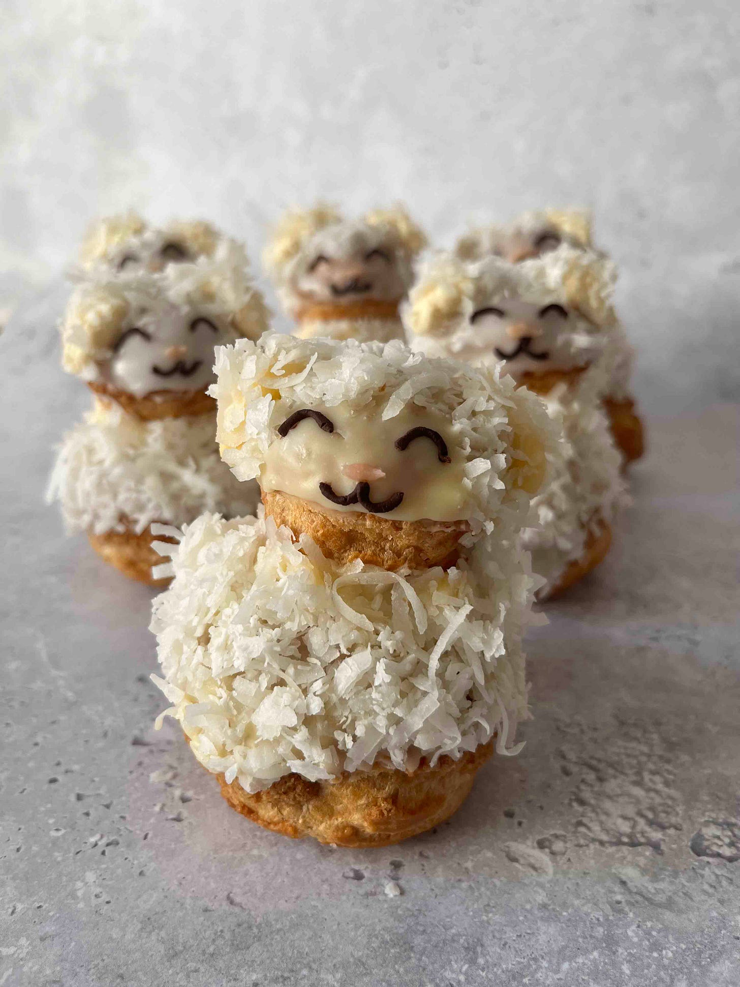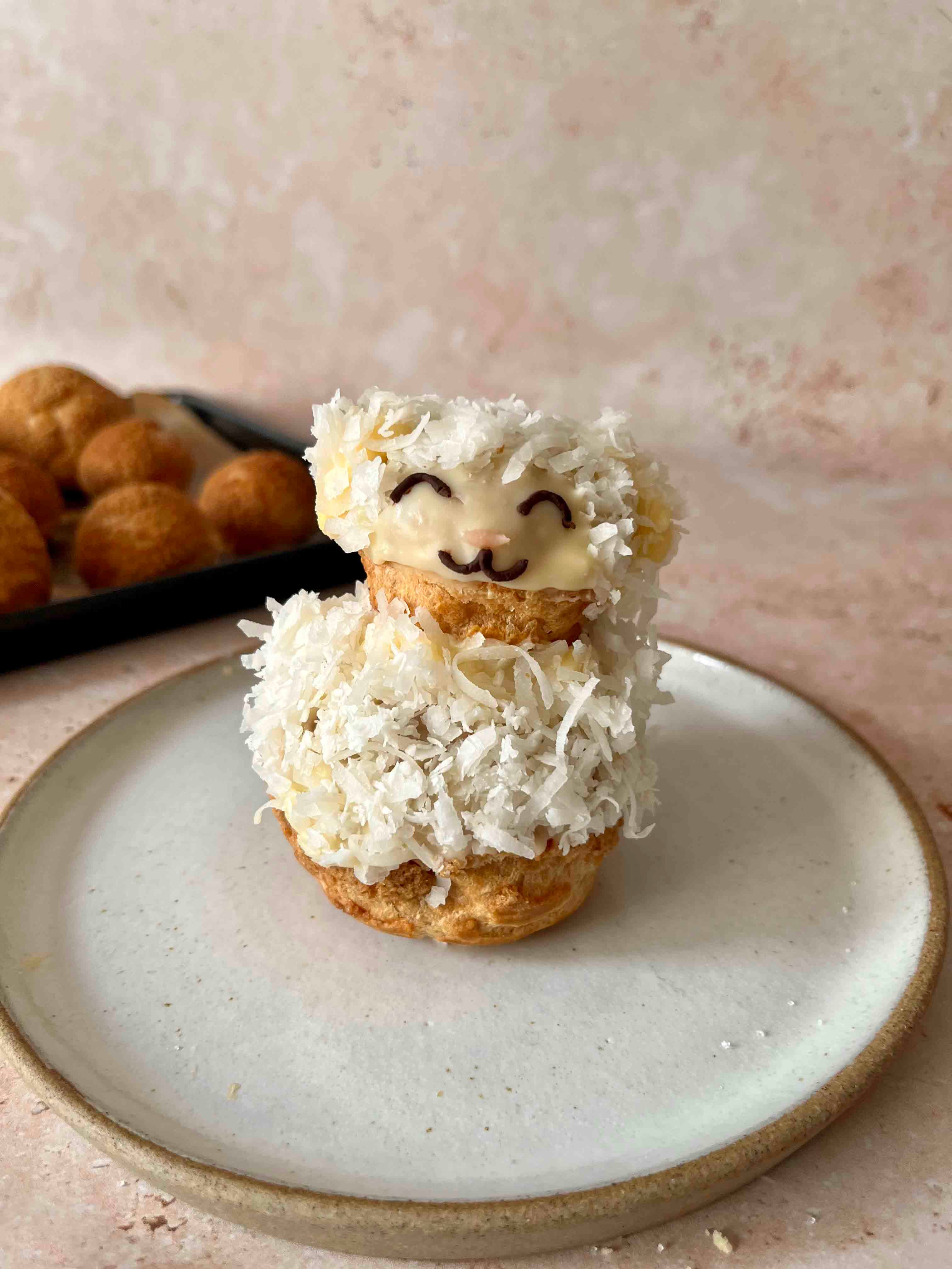 Today I am getting back in touch with the part of myself that is obsessed with adorable, finessed pastries. Even though I wanted to have lots of fun with the design this week, it was also a perfect opportunity to be seasonally sensitive – enter my Little Lamb religieuse! I – of course – have a predilection for Lambs, oweing to my last name. This means I don’t actually eat a lot of Lamb (the animal) so this is probably the closest I’ll get this year:
