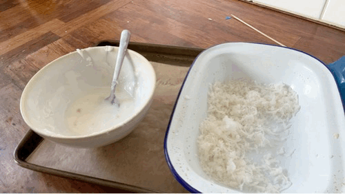 To make the most of that amazing toasted coconut flake flavour flavour we will make an infusion with darkly toasted coconut flakes and combine with mascarpone and salt for a wonderful thick cream. But for the deco, the sweetened bakers coconut is definitely the way to go. Desiccated doesn’t look bad but you don’t get quite as much volume which I think is essential for these – the coconut flakes look okay but they aren’t that easy to eat when raw so not really a practical choice for the finishing.