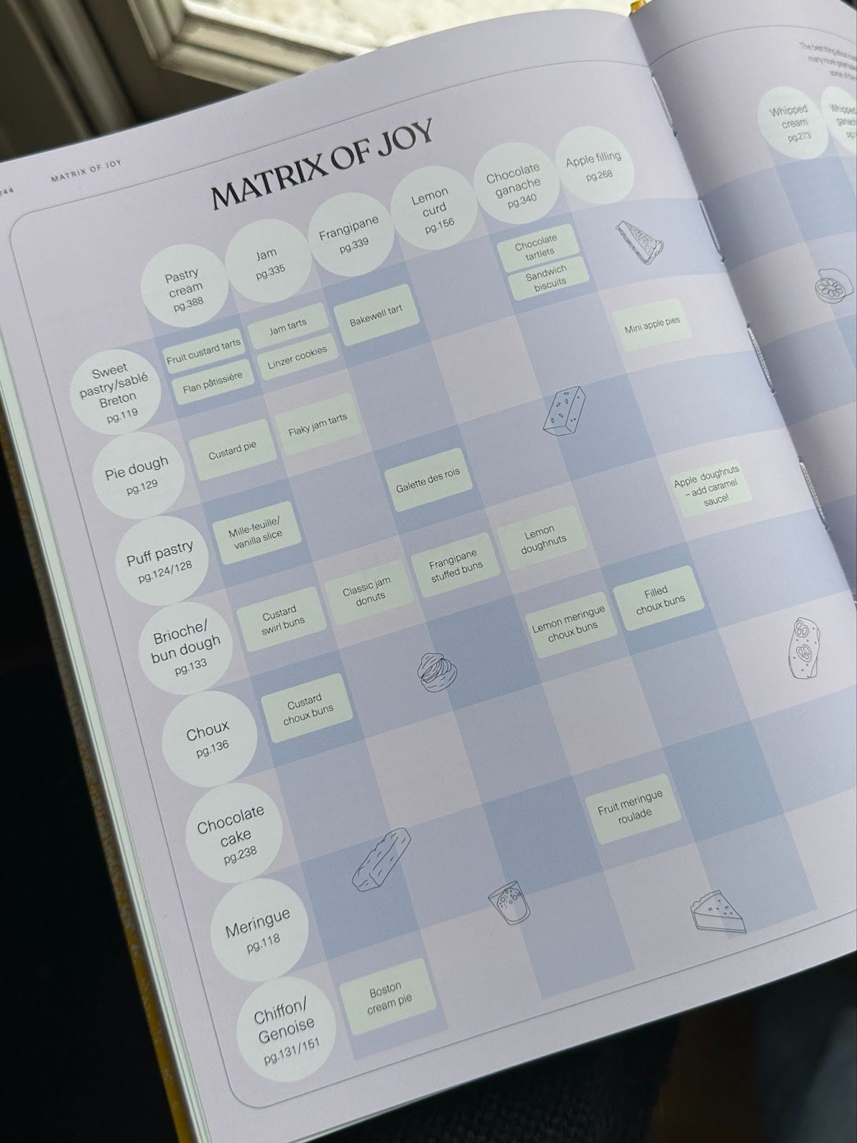 It’s a mix-and-match table which pairs up bases - think genoise, chocolate cake puff pastry - with fillings, like frangipane, whipped cream and jam. It is by no means an exhaustive list, but I wanted to show you how unlocking one recipe actually means unlocking a BUNCH. The world is your oyster. Or, trifle. There really is no limit!