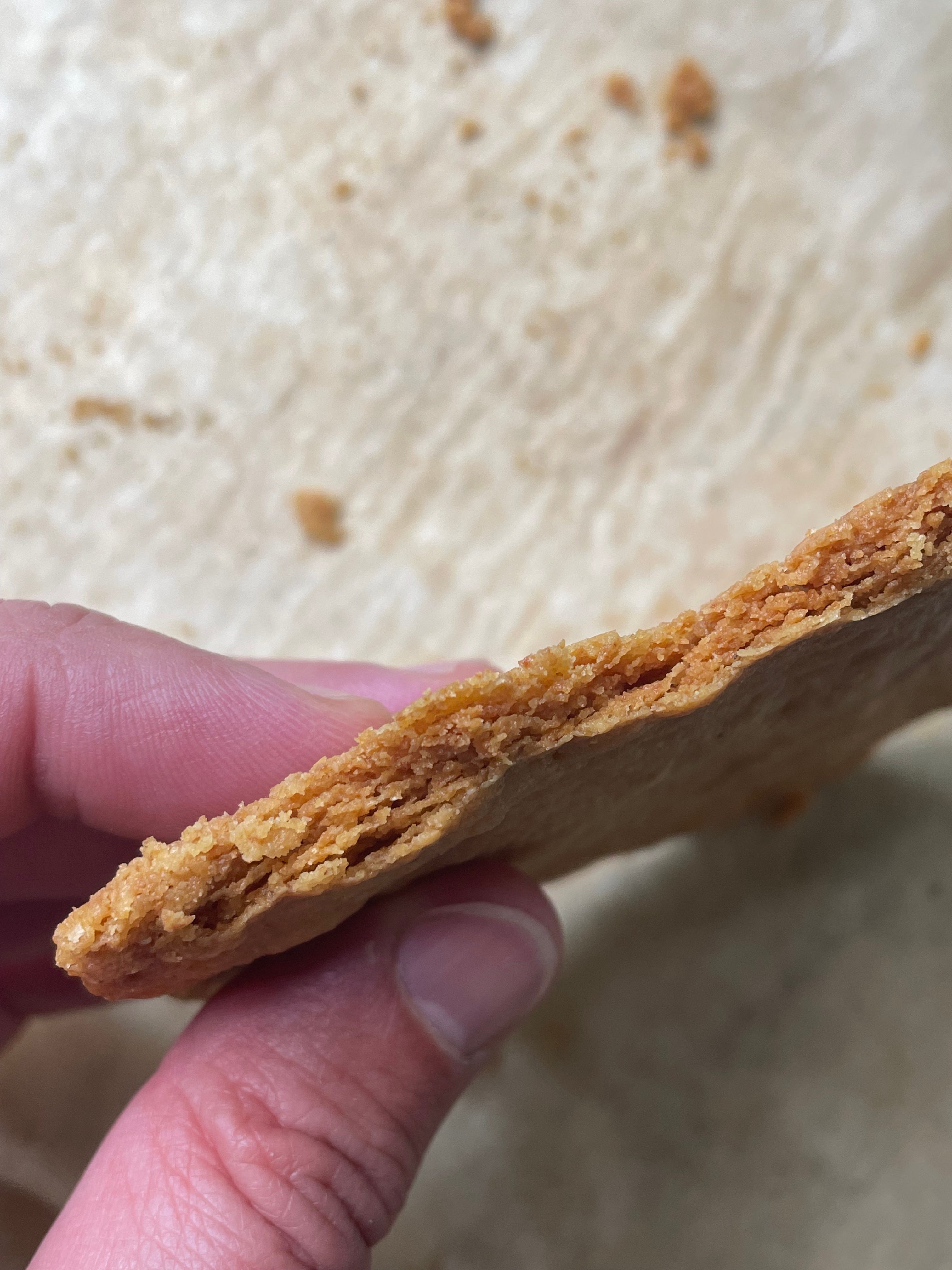 But the more it marinated, it began to seem a good way of easing into the shallow end of the gluten-free pool (the deep end being that airy, chewy bread) and of highlighting the quieter contributions gluten makes to the typical wheat-flour recipe. The more obvious contribution is helping to hold a mass of dough together, making it possible to roll it out to a thin round without it crumbling to pieces. But what I hadn’t realized until Goyoaga pointed it out is that gluten also plays an important role in achieving flakiness and “snap,” as it allows for unbroken layers of dough to be stretched to extreme thinness between layers of butter. The butterfat seals each layer of dough while the butter’s water creates steam during baking that produces wide, shallow pockets of air between the layers, enhancing their discreteness and thus creating the phenomenon we call flakiness.