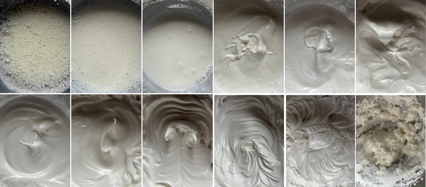 Following where we left off on whole eggs, let’s begin with a lesser-known cake (at least in the West), the Taiwanese Castella. The castella cake, which uses whipped egg whites, was introduced to Taiwan during the Japanese occupation (1896-1945). It has a more custardy, wobbly and moist texture. This week was the first time I’d made these - it’s a very popular cake on YouTube, so shout out to Kitchen Princess Bamboo and Emojoie for their helpful videos.