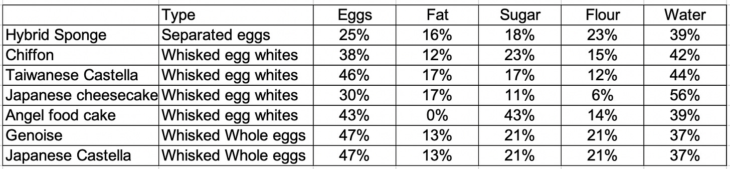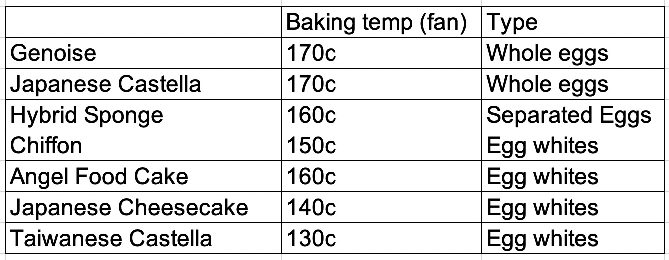 So, there we have it. An introduction to all of the foam cake family. There are a LOT of amazing foam cake recipes out there (please go down the Castella cake and Japanese cheesecake youtube rabbit hole - it’s fun here!)