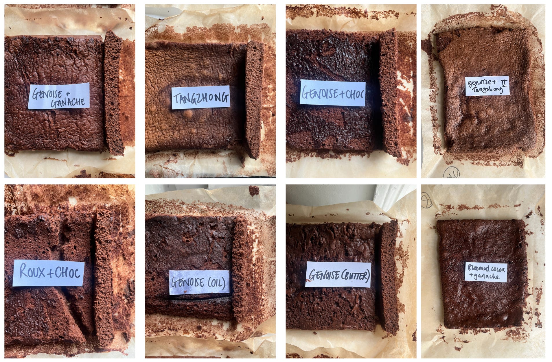 This week, as I was making my way through the airy cakes, I thought: What would a tangzhong do in a cake? I’ve long loved the effects of the tangzhong in bread, the technique of pre-cooking some of the flour so it gelatinises. It allows you to introduce a higher proportion of hydration into bakes, improving oven spring and texture. But in a cake? What happens then? Would this help with the issue of cocoa powder being so drying and difficult to incorporate? I didn’t have much hope, but let me tell you: It’s fantastic. The cakes using a bit of pre-cooked cocoa and flour were so incredibly cottony, like a set mousse, and so gloriously puffy.