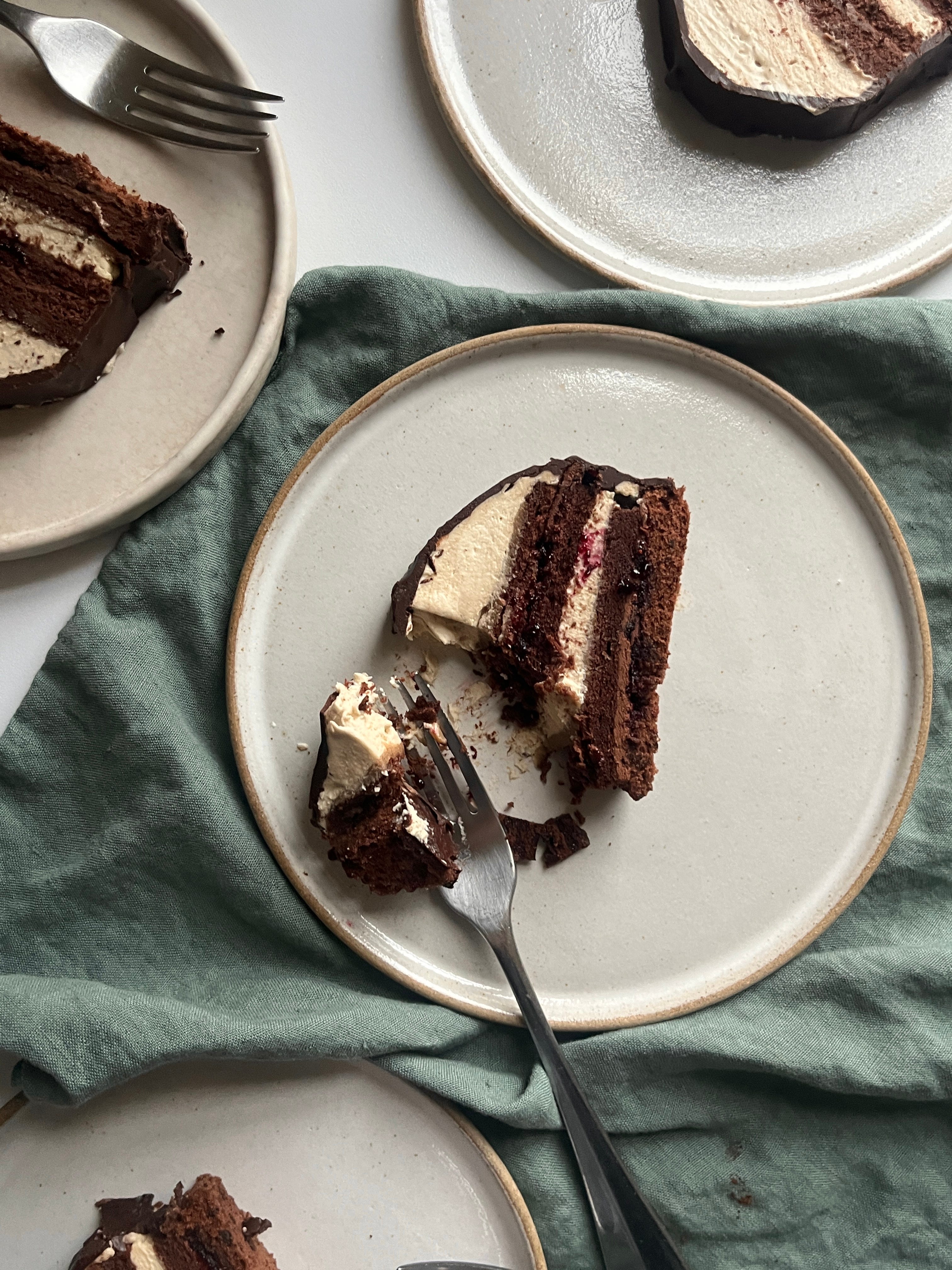 The clear winner was the cake made with the tangzhong. Though the chocolate flavour was comparatively lacking, the cake gets so much richness from the filling/coating that the primary responsibility of the sponge is to be soft, soft, soft! I looked a bit further into the subject, and this technique is similar to ‘tang mian’, where the fat is melted and flour added to it, like a roux you’d make for bechamel sauce. This cooked flour is then let down with the liquid. The result is a super squishy cake - it tracks! In the recipe I’m sharing below, we cook the cocoa powder with the liquid and fat and just a little of the flour until thick.