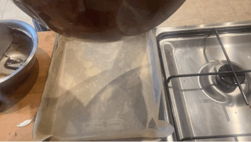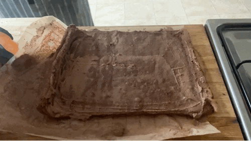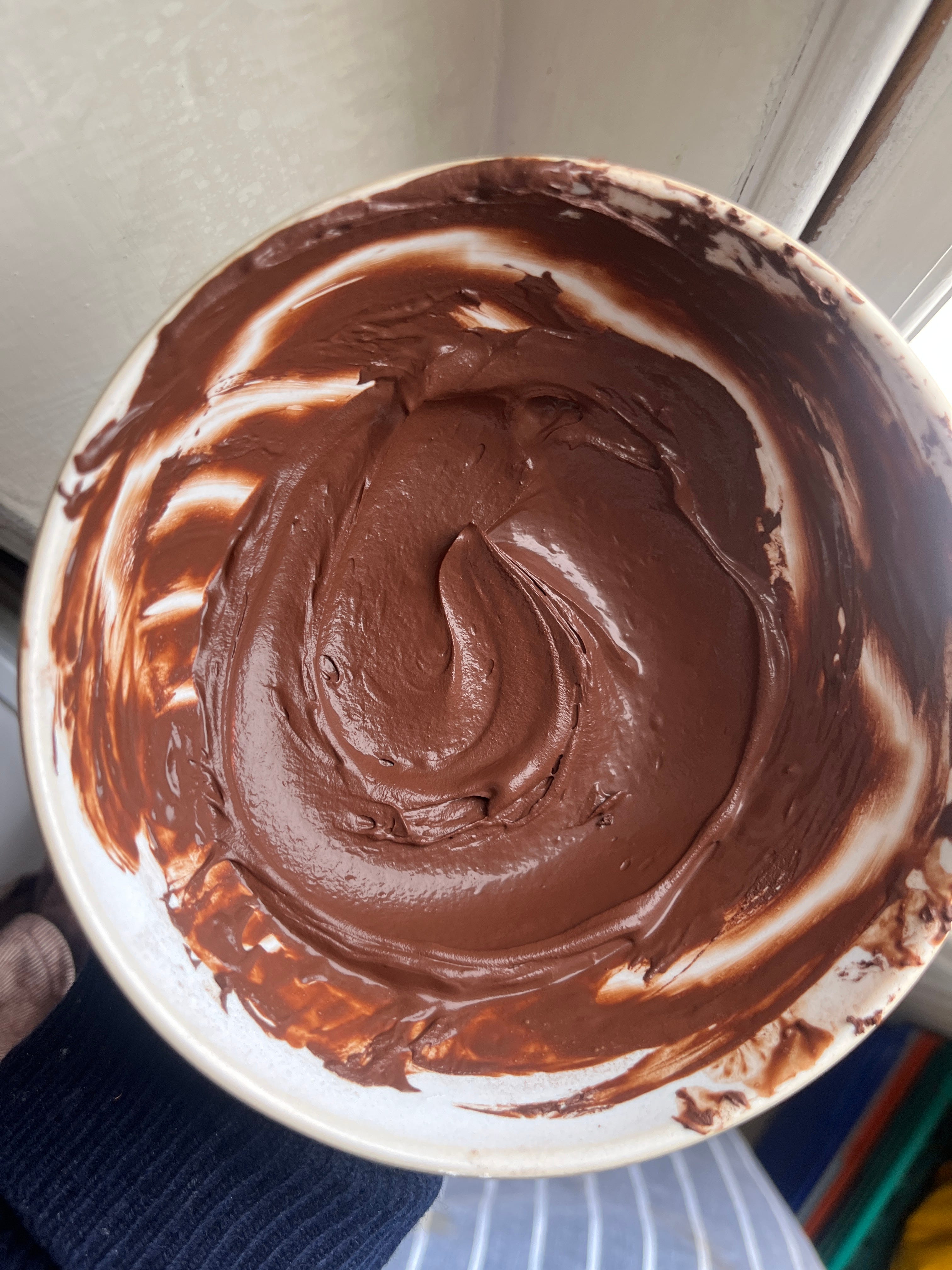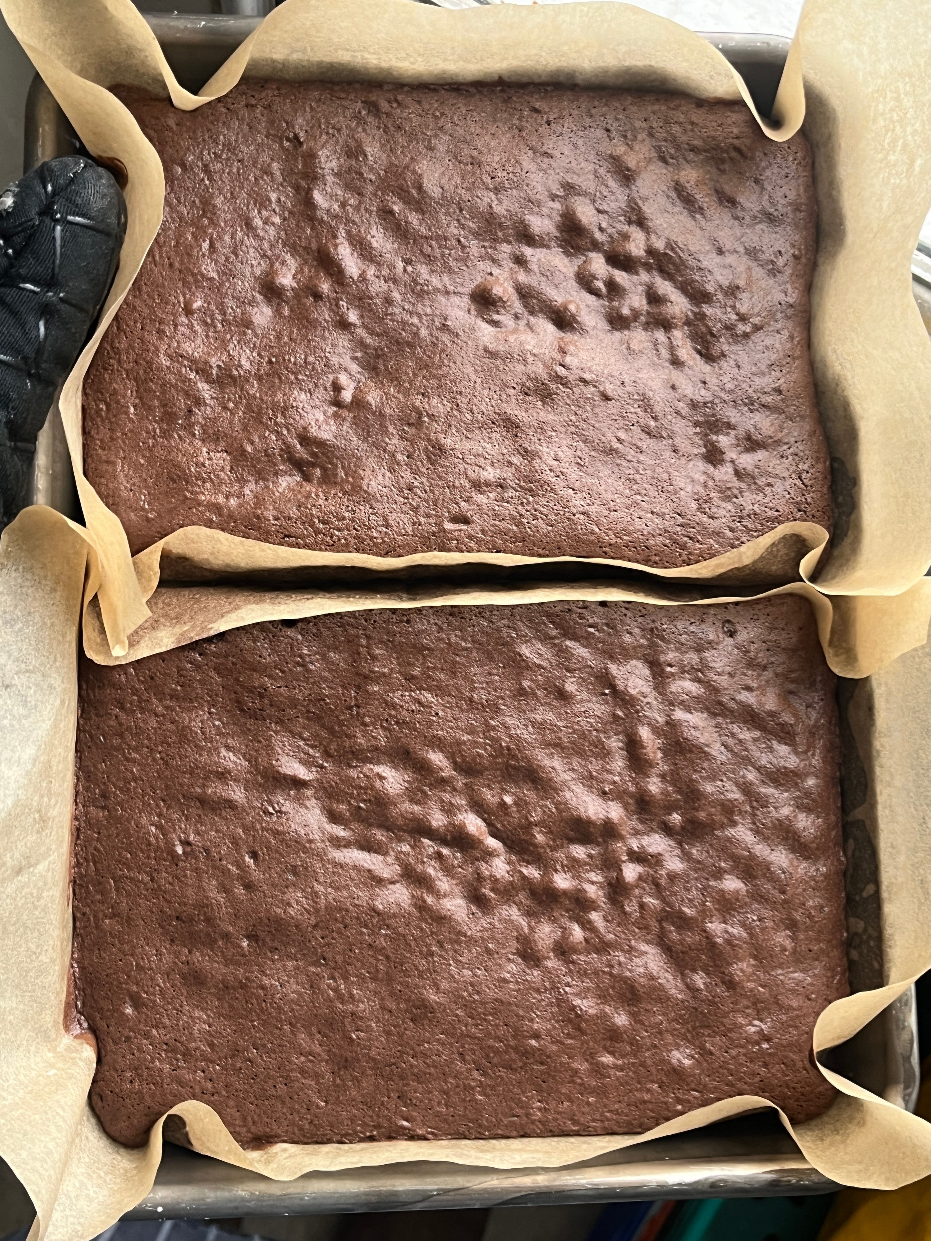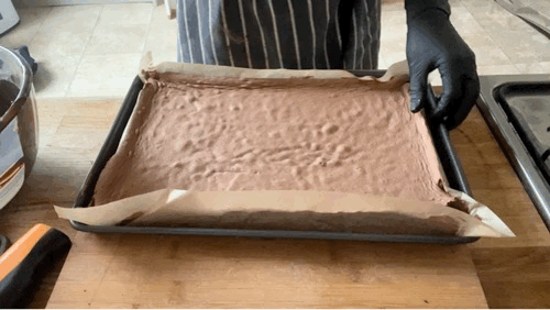 It looks quite like choux pastry, oddly, but the effect is an expansive cake with incredible softness, flavour, chew and flexibility. The gelatinised cocoa and flour create a solid, sturdy base for the eggs to inflate and expand. Another bonus with this technique is producing a comparably thick and flexible sponge with just four eggs in my 10 x 15inch pan, compared to the six eggs I used in this recipe. You’ll be overjoyed watching it puff up in the oven. To really lean into the mousseyness, I’ve reduced the baking temperature to just 140c -150c fan to help the cake rise gently and evenly - it helps it set beautifully.