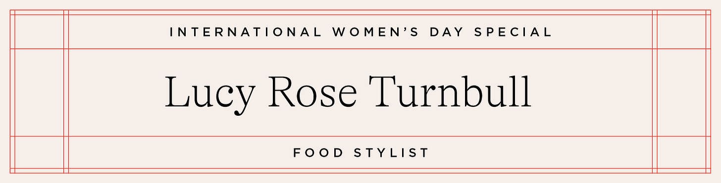 Lucy Rose Turnbull is a London based chef and food stylist. She was the food styling assistant on the book, working alongside Holly on producing everything for the shoot and making it look its best. She is a total multi hyphenate talent, running supper clubs, developing recipes and food styling across London.