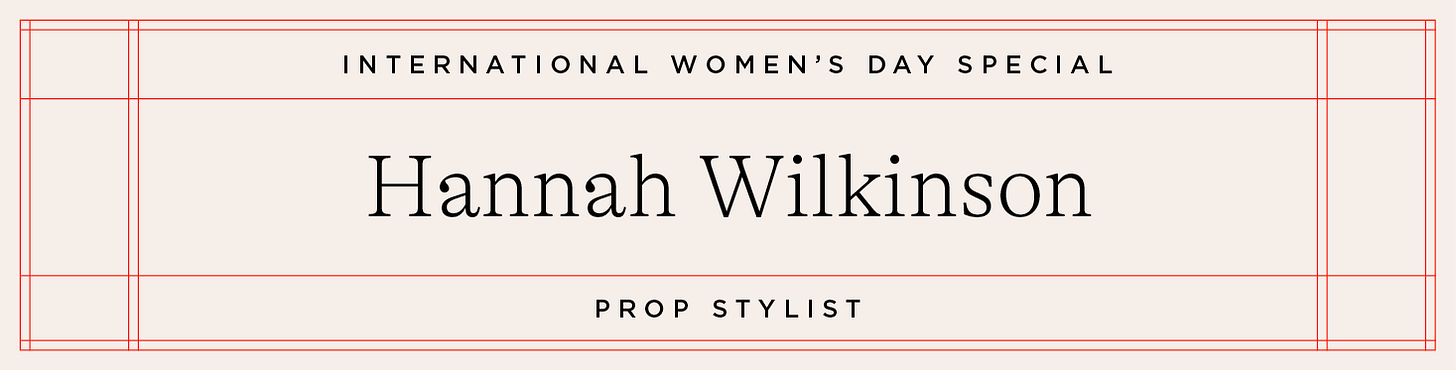 Hannah Wilkinson is a prop stylist based in London. Pretty much every single plate, spatula, fork or tray you’ll see in SIFT was picked by Hannah - the prop stylist is crucial in giving cookbooks a specific feel and energy. She has impeccable taste. Previous projects of hers include The Great British Bake Off: A Bake For All Seasons, Kolkata by Rinku Dutt, Simply Vegan Baking by Freya Cox and The Peaky Blinders Cookbook by Rob Morris.