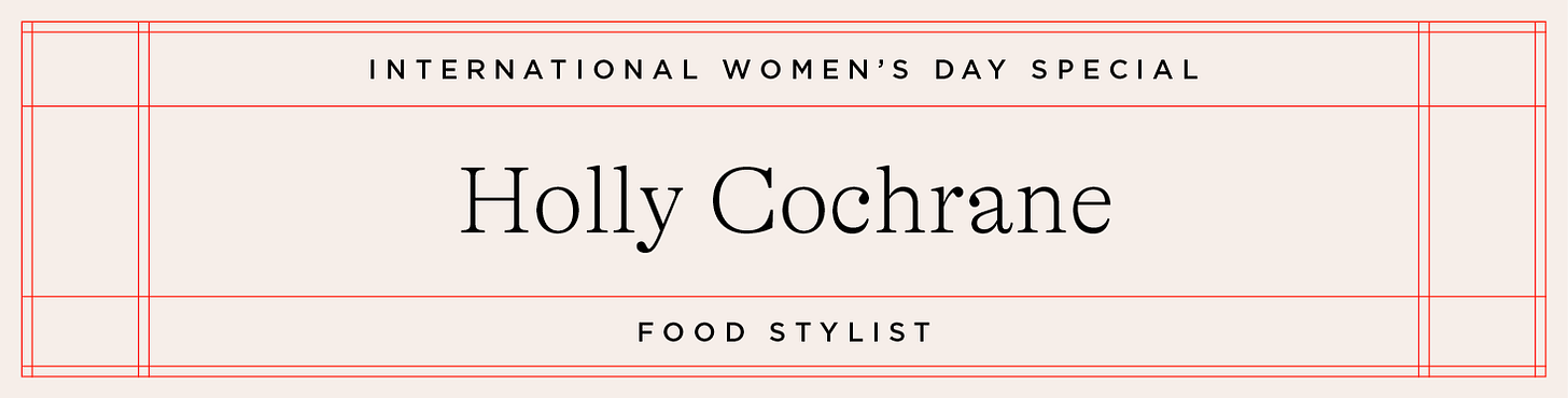 Holly Cochrane is a food stylist and baker based in London. I’m such a fan (and have interviewed her before about her cakes / microbakery on this newsletter!) and knew, as soon as I started working on my cookbook, I knew I wanted Holly to style the project. Her organisational skills are unrivalled, pastry tekkers extraordinary, and someone I continuously learn so much from. What an icon!
