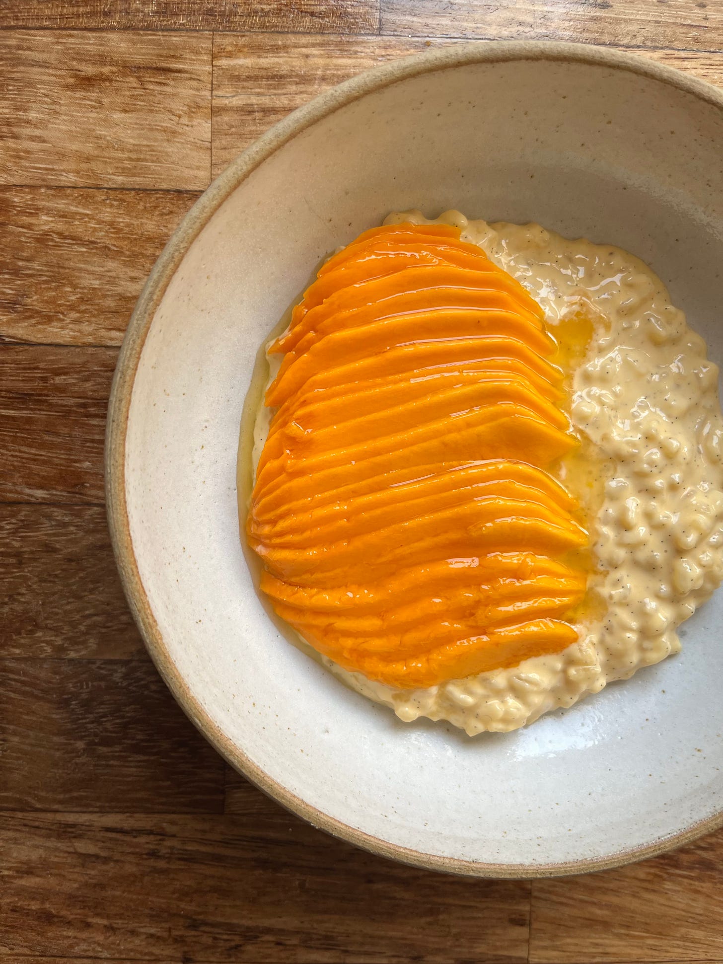 This recipe makes perfect, creamy rice pudding, whether you enjoy it hot or cold. Served simply with sliced mangoes, you are in for a treat.