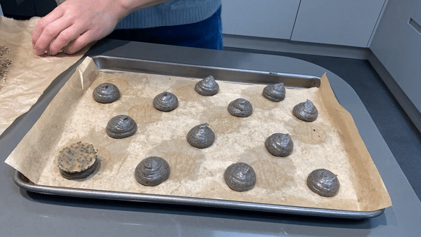 In terms of size, the craquelin should be approximately the same diameter as the choux bun underneath. If you don’t have the perfect cutter, a smaller diameter does work but the craquelin is ‘stretched’ over a larger expanse and it doesn’t have the same amount of coating on the bun.I also tested a larger diameter - I was worried it might weigh the choux down but it was absolutely fine. The only real problem it gave me was that certain areas slipped down onto the tray and burned slightly, since there was more craquelin than dough. This was easily solved though - I simply crumbled it off before filling.