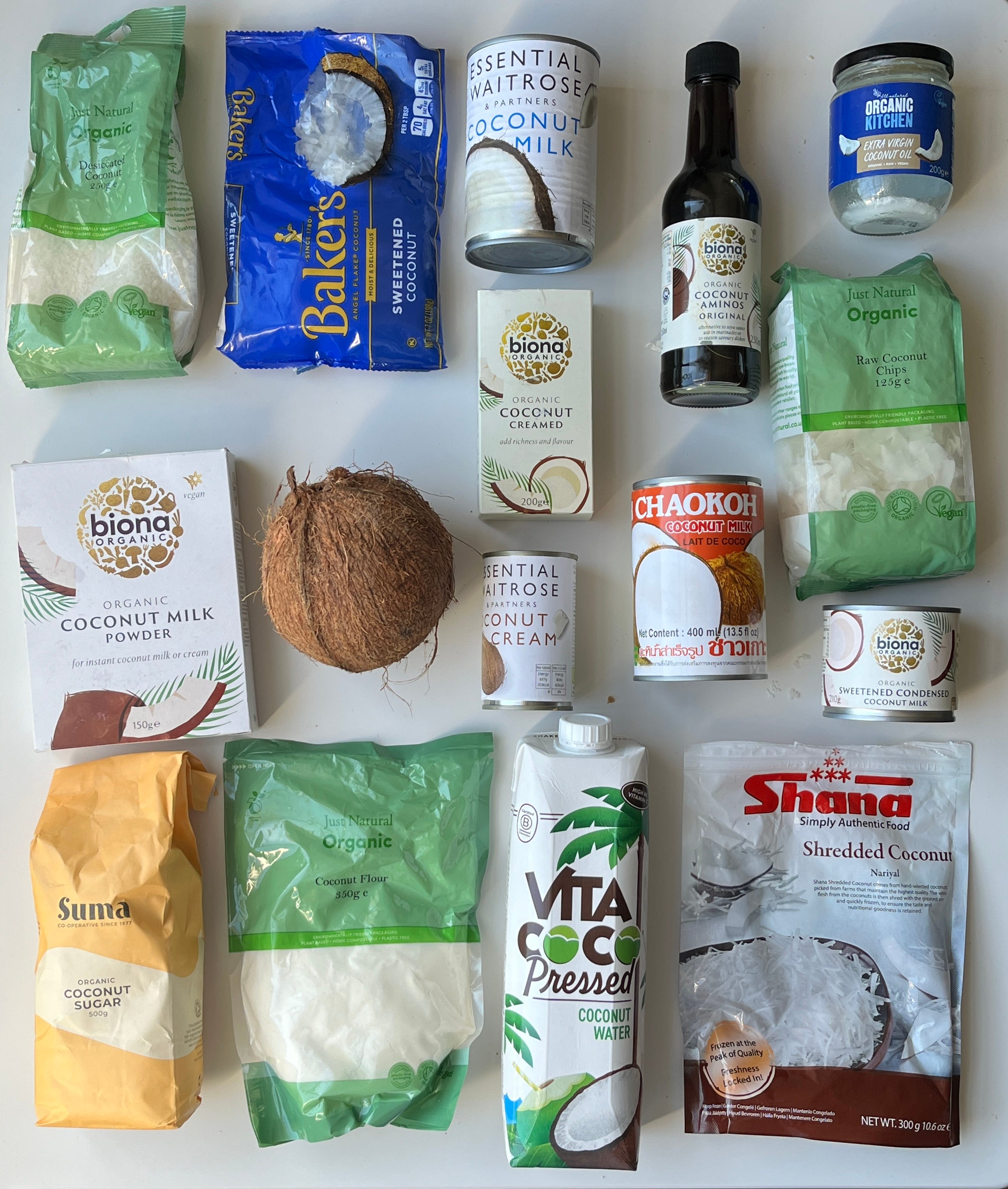 Here is a list of all the coconut products I have encountered or am aware of during the research of this newsletter: