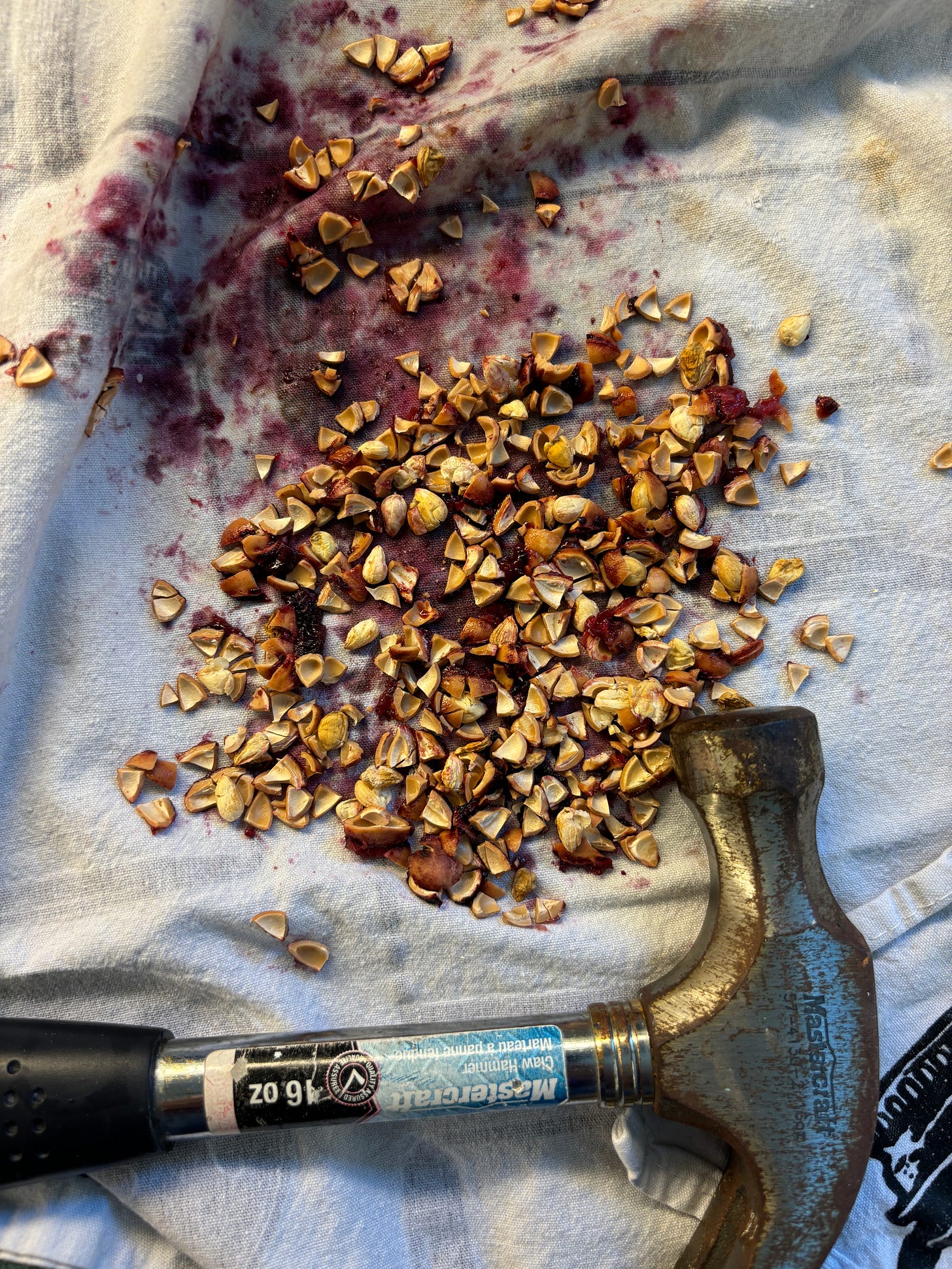 If you too are undeterred, depending on how many kernels or pits you’re planning to use, and how much fruit you’re using simultaneously, you may or may not have an easy time getting the desired amount all at once. If you need a large quantity but don’t need the fruit, there’s no need to eat a whole pound of apricots and make yourself ill. Just save the pit every time someone in your household enjoys some stone fruit, then pop it in the freezer in an airtight container or freezer bag, and soon enough you’ll have collected a good amount. Don’t keep them in the refrigerator, as they are as prone to mold as any fruit and won’t last much longer than a week or so.