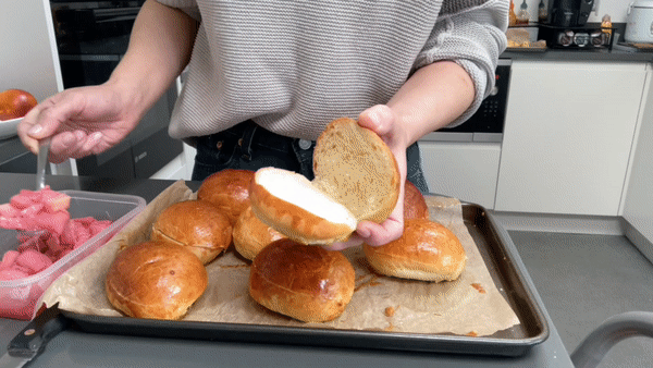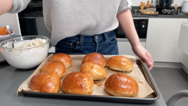 Leave to cool before filling. If you are filling the next day, wrap the buns well. They are best on the first day but still lovely on day 2 and 3