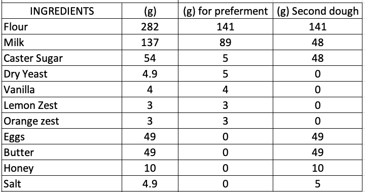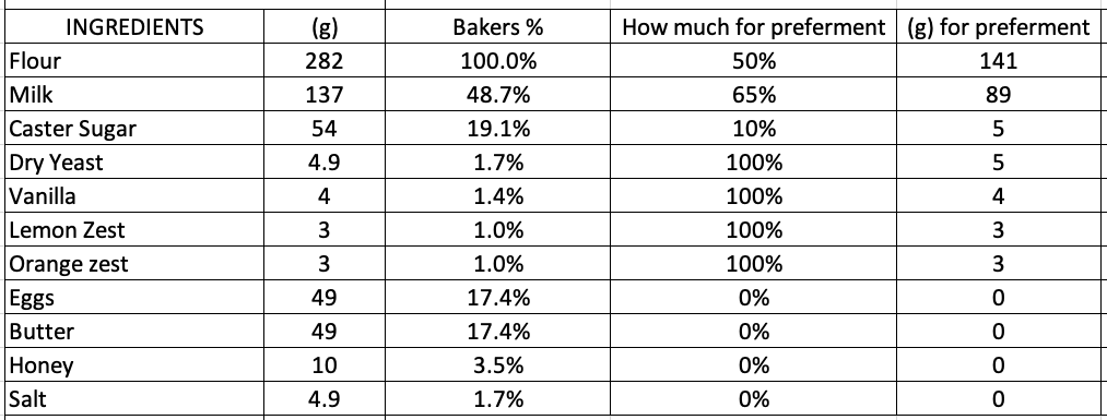 Finally, I subtracted the (g) for preferment from the original recipe to give me my final formulations for both stages: