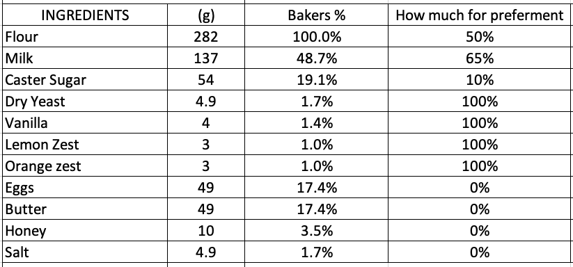 Well, for the soft and squishy sweet buns I was dreaming of, I wanted to open up the flavours as much as possible. To do this, I heated the milk and infused it with the citrus peels and vanilla, and allowed it to cool before blooming my yeast in it and then using it to mix the pre-ferment. This gives me maximum dough flavour infusing time.