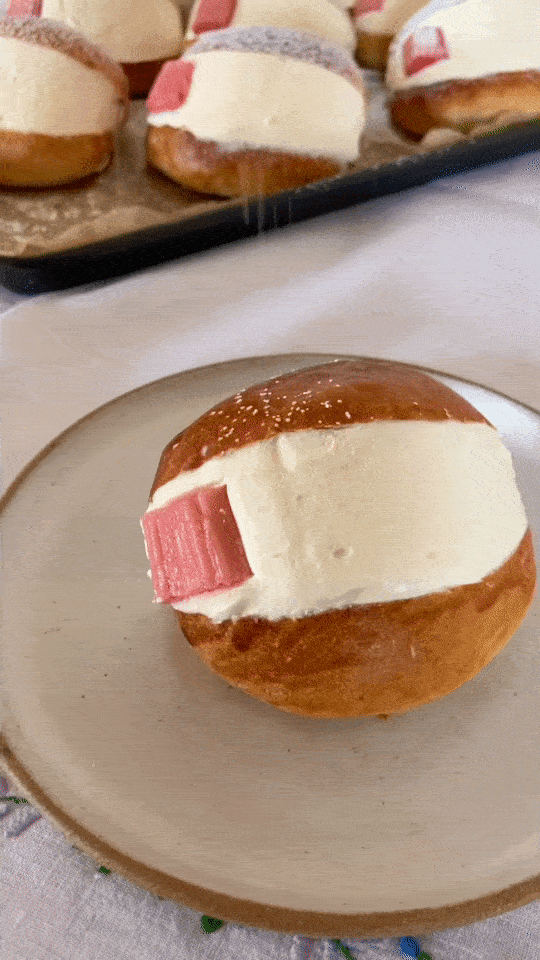 It’s been a while since I made dough. And I miss it. With rhubarb really coming into its own, I wanted to create a beautiful and soft bun that could be filled with cream and roasted rhubarb.