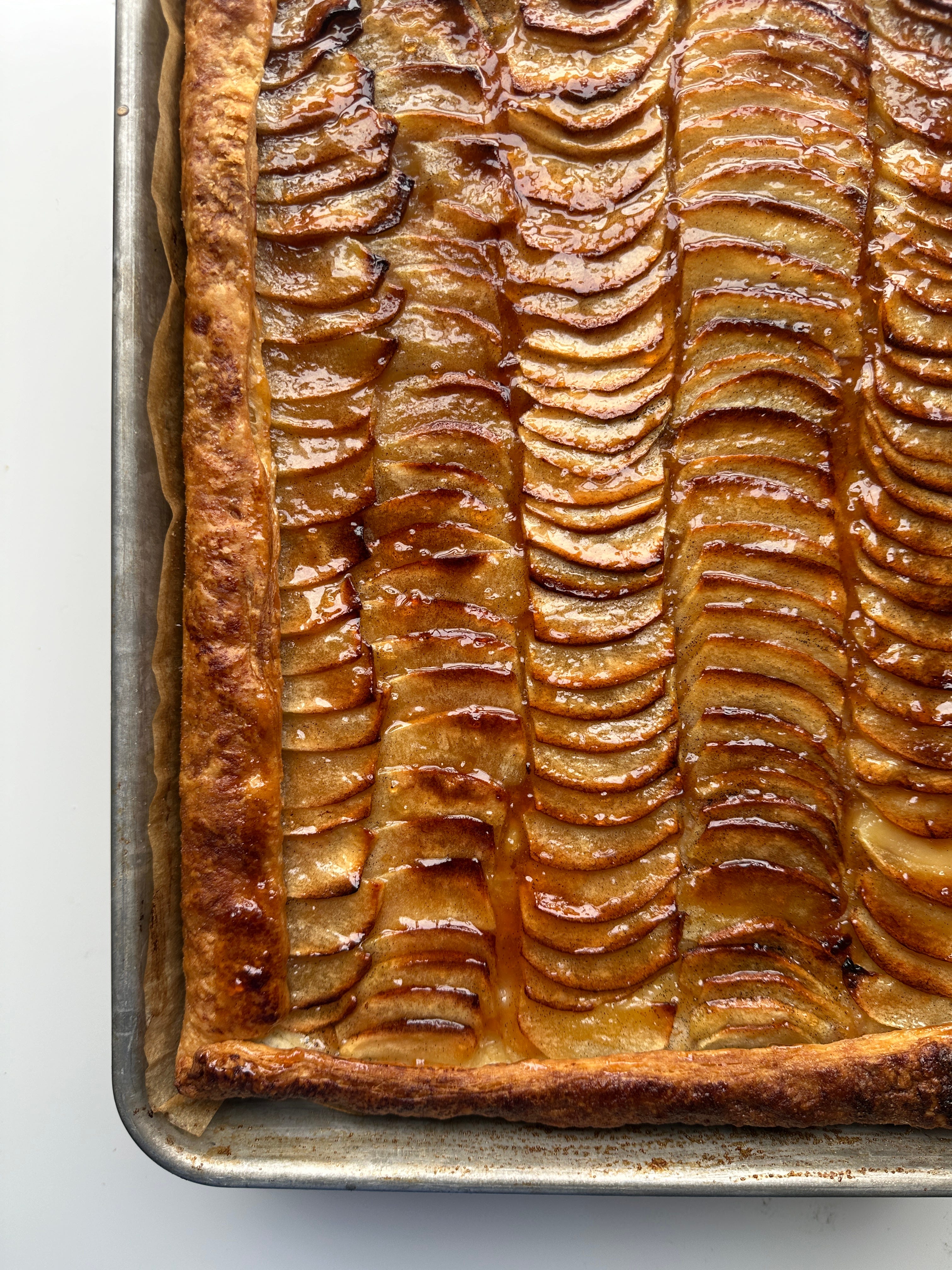 Ahead of the launch, I want to share two autumnal variations on recipes in the book: An Apple Tart, riffing on the ‘Any Galette’ pg. and an Apple Crumble Custard Cake, riffing on the rhubarb custard cake on pg. 252. These are the recipe equivalents of getting your knitwear and thick socks out of storage and readying yourself for the months ahead.