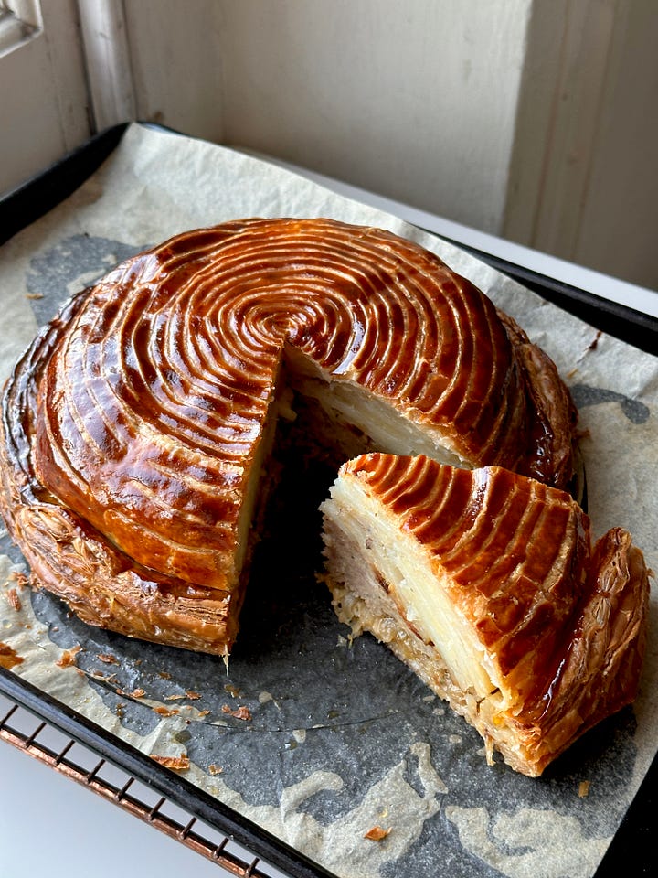 A pithivier is a round pie which encloses a filling between two discs of puff pastry. Sound similar to the galette des rois I always go on about? You’d be correct. Though the exact origins of both are unclear, it seems the conceptual pithivier existed before the cultural ritual of the galette des rois. And while the ‘GDR’ is only enjoyed around epiphany, a pithivier can be served any time of the year.