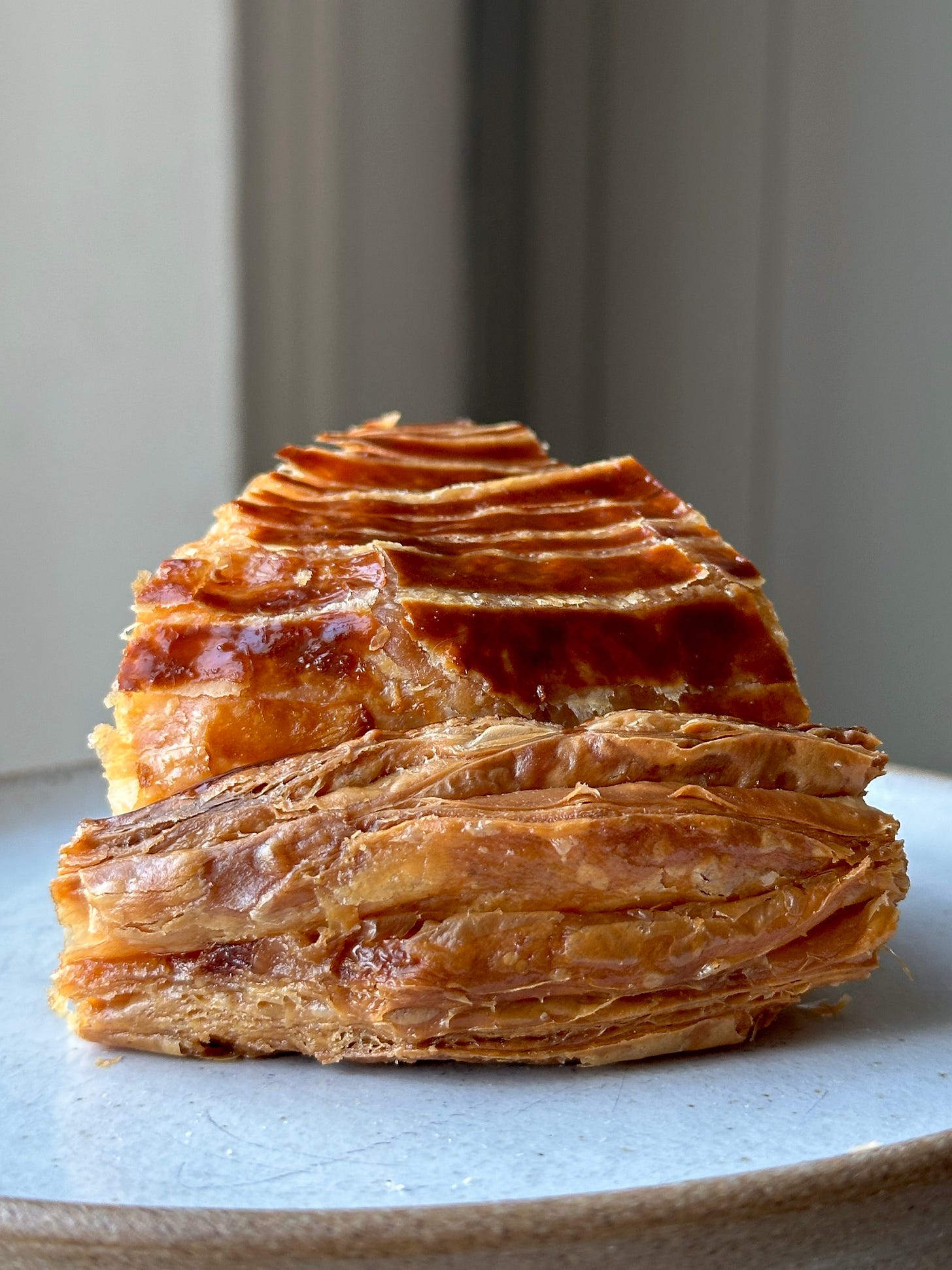 To bake the galette, pre-heat oven to 200c fan. Bake for 20 mins until puffed, then turn the oven down to 180c fan and bake for another 20 minutes. If it isn’t dark enough for you, keep baking for another 10-20 minutes. Leave to cool slightly, but eat whilst warm. Store at room temperature in an airtight container for 3 days. Refresh in a 180°C/160°C fan oven for 5–10 minutes.