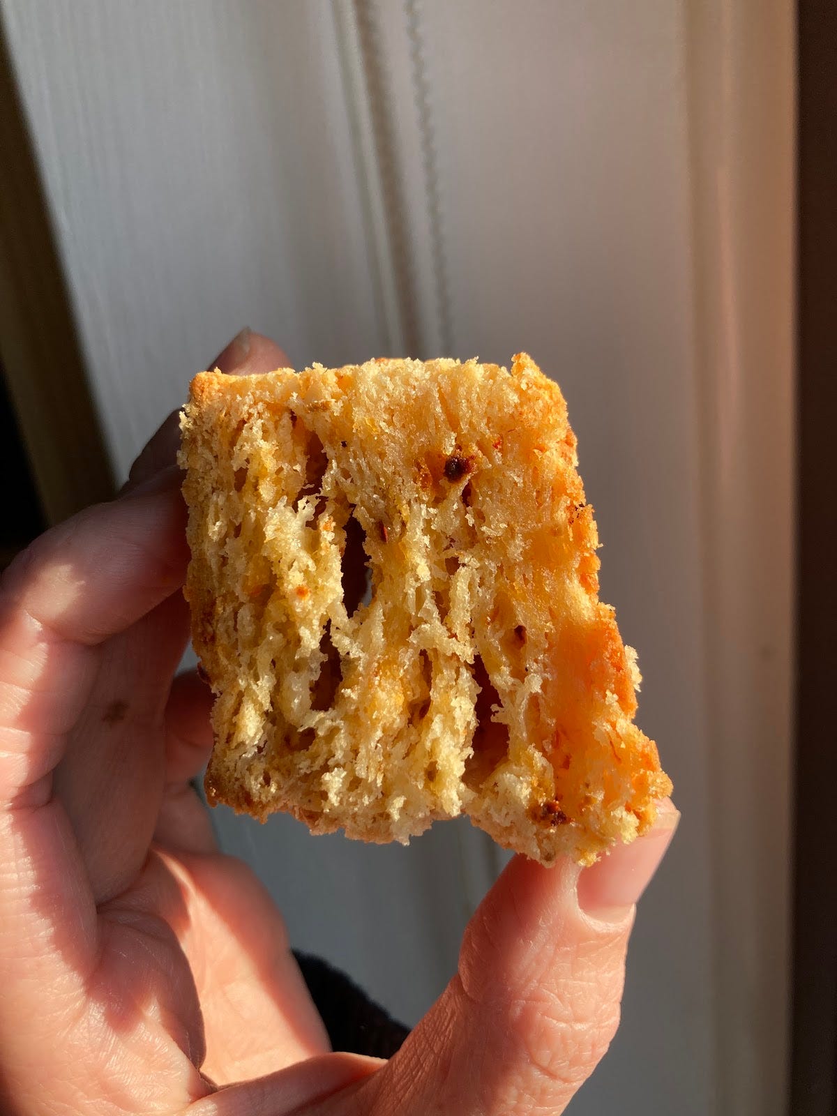 This recipe definitely needs the acidic buttermilk – firstly, to react with the raising agents for additional lift and secondly, to help cut through the intense cheesiness and make the scone a bit more complex.