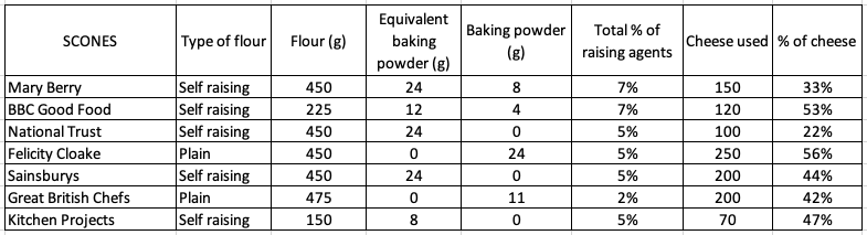 Scones are supposed to be tall. But how much baking powder do you actually need to achieve great heights? As I had self-raising flour on hand, I decided to simply use that. But would that give me enough lift? I decided to check out the other cheese scone recipes on the market to see what’s what.