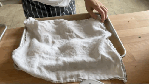 Press the mould directly into the centre of the bun, creating a doughnut-like shape. You need to press quite hard, and you can rotate the mould around a bit to get the best shape. You may need to repeat a few times if the dough springs back, but persevere. Just try not to squash the edges. You can help further expand the hole in the middle using your hands - grease them a little! Leave to relax for 10 mins, then come back and help spread them out a little more if they’ve sprung back