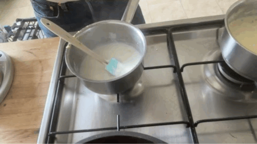 For the brioche, start by cooking the cornmeal base. Bring the milk to the boil in a small saucepan, then add the cornmeal and salt. Stir continuously until thickened and boiling, then boil for a further minute to ensure it is very thick and can pretty much hold its own weight. Pour straight into your stand mixer bowl and leave to cool for 10-15 minutes.