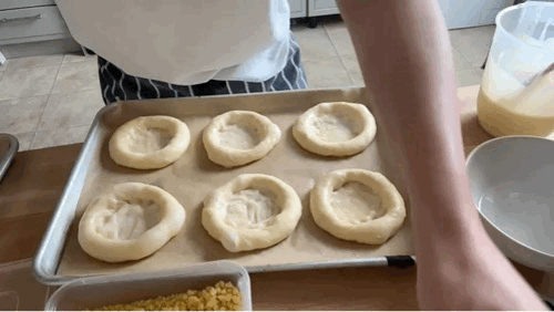 A little enriched dough bun is a wonderful treat. But using enriched dough as a base for a little “tart” is even better - essentially a dinghy of dough filled with delicious things. You can see this in large formats in bakes like Romanian Pasca, or in a smaller size in jam-stuffed kolaches. It is breakfast Danish adjacent, but instead of a yeasted flaky pastry, it uses brioche. I’ve experimented with this shape before - a chocolate custard and frangipane stuffed chocolate brioche was one of my proudest development moments. During my book tour in LA, we made a version of the pumpkin brioche with roasted pumpkin and salsa verde.