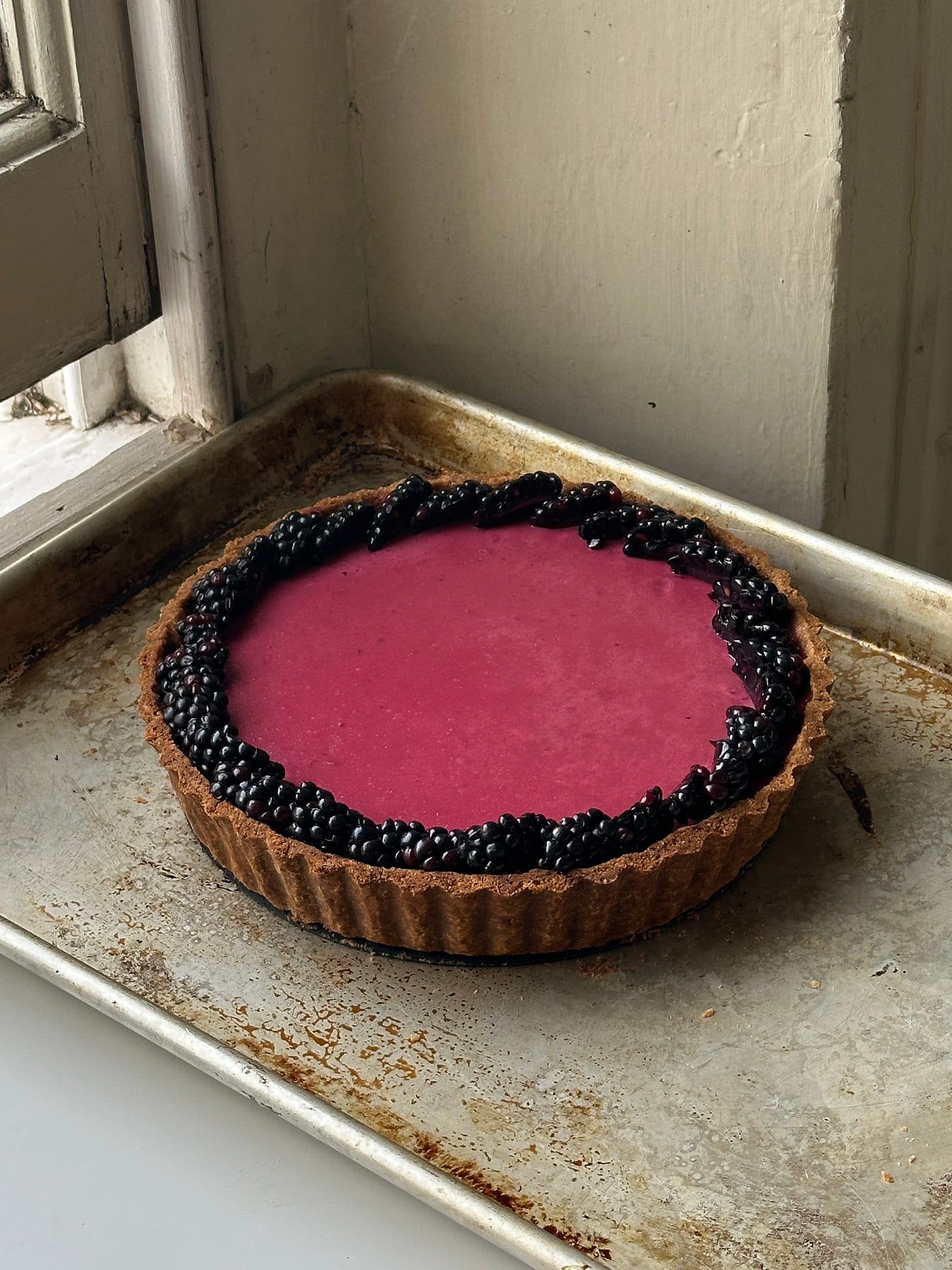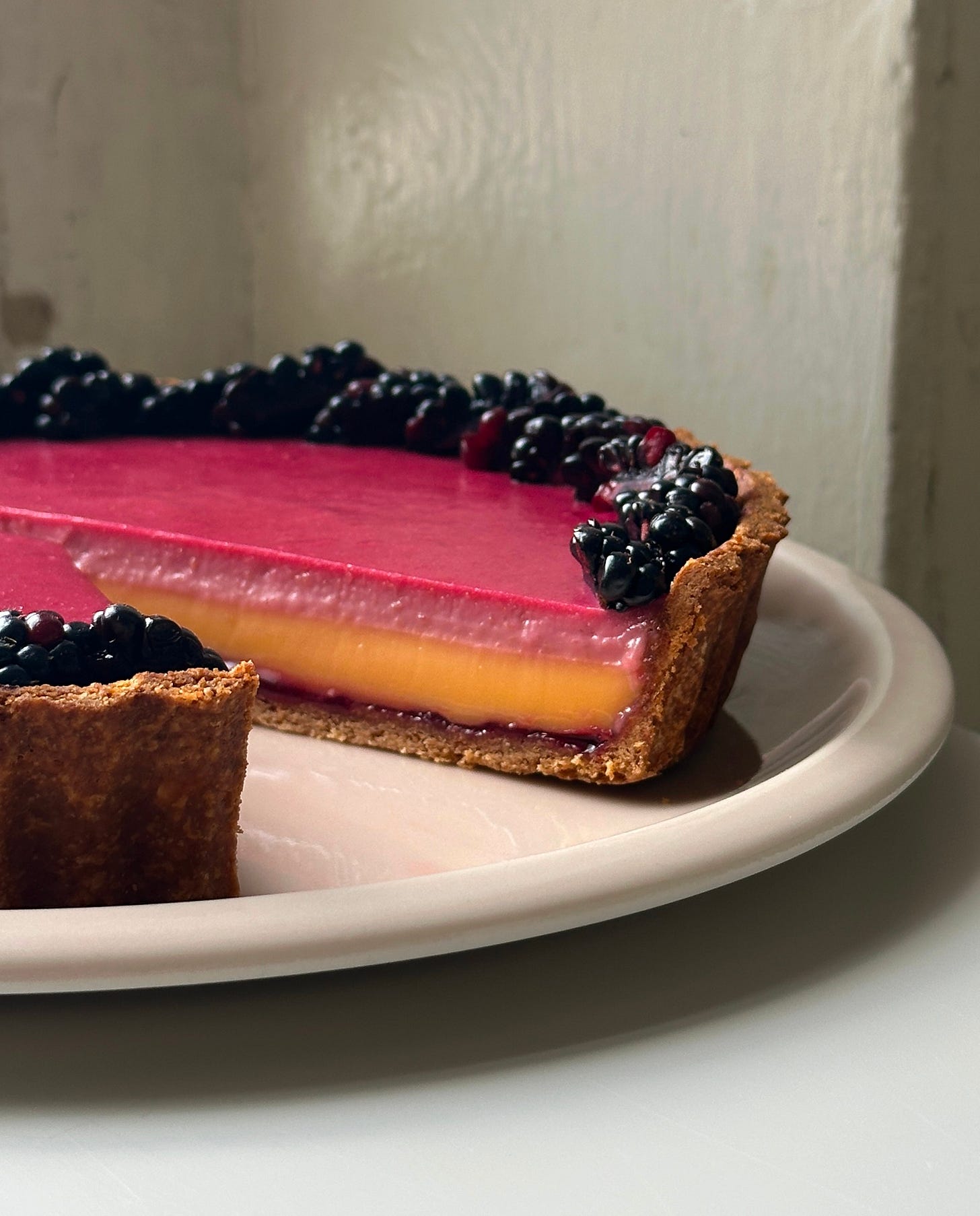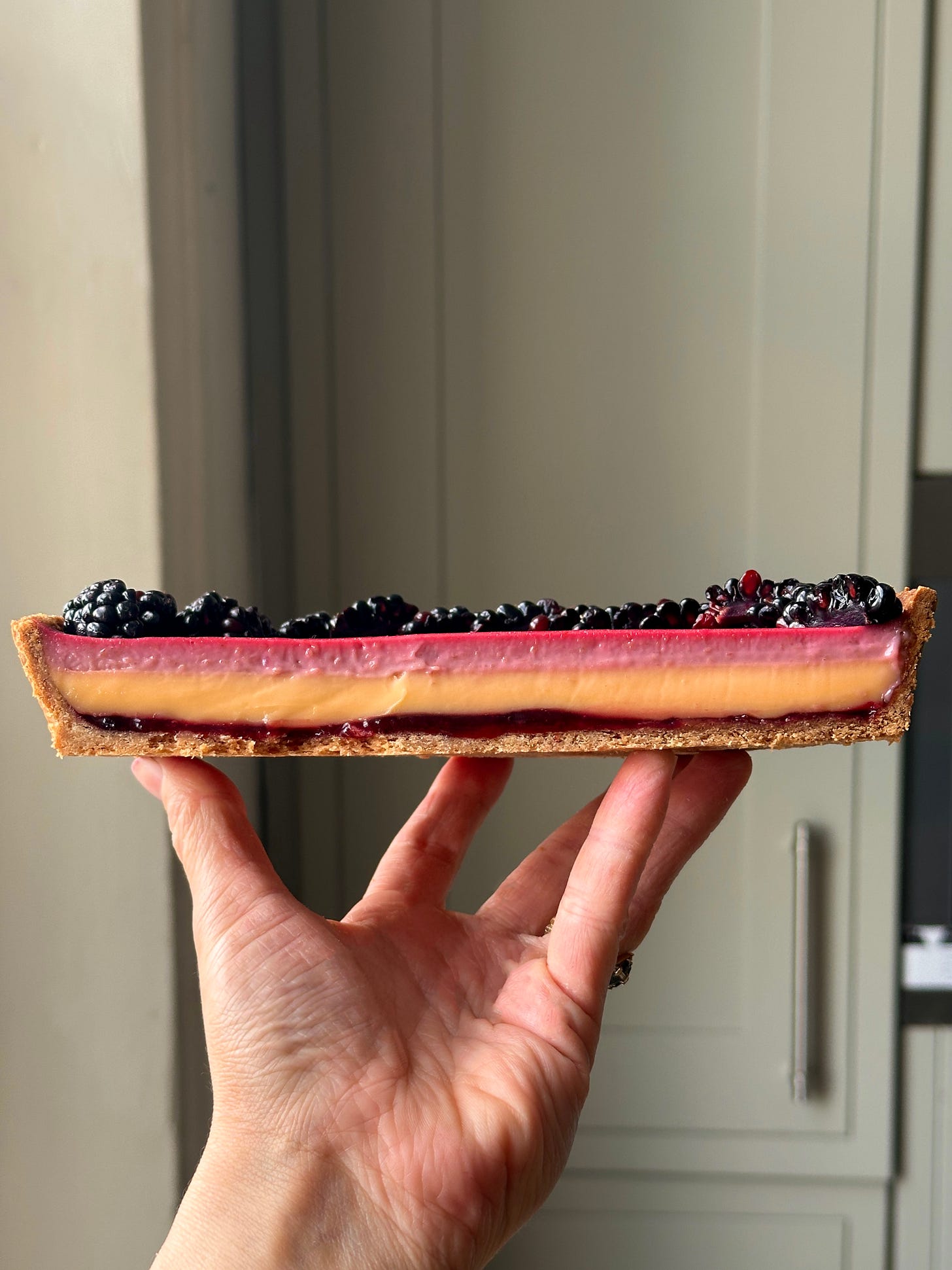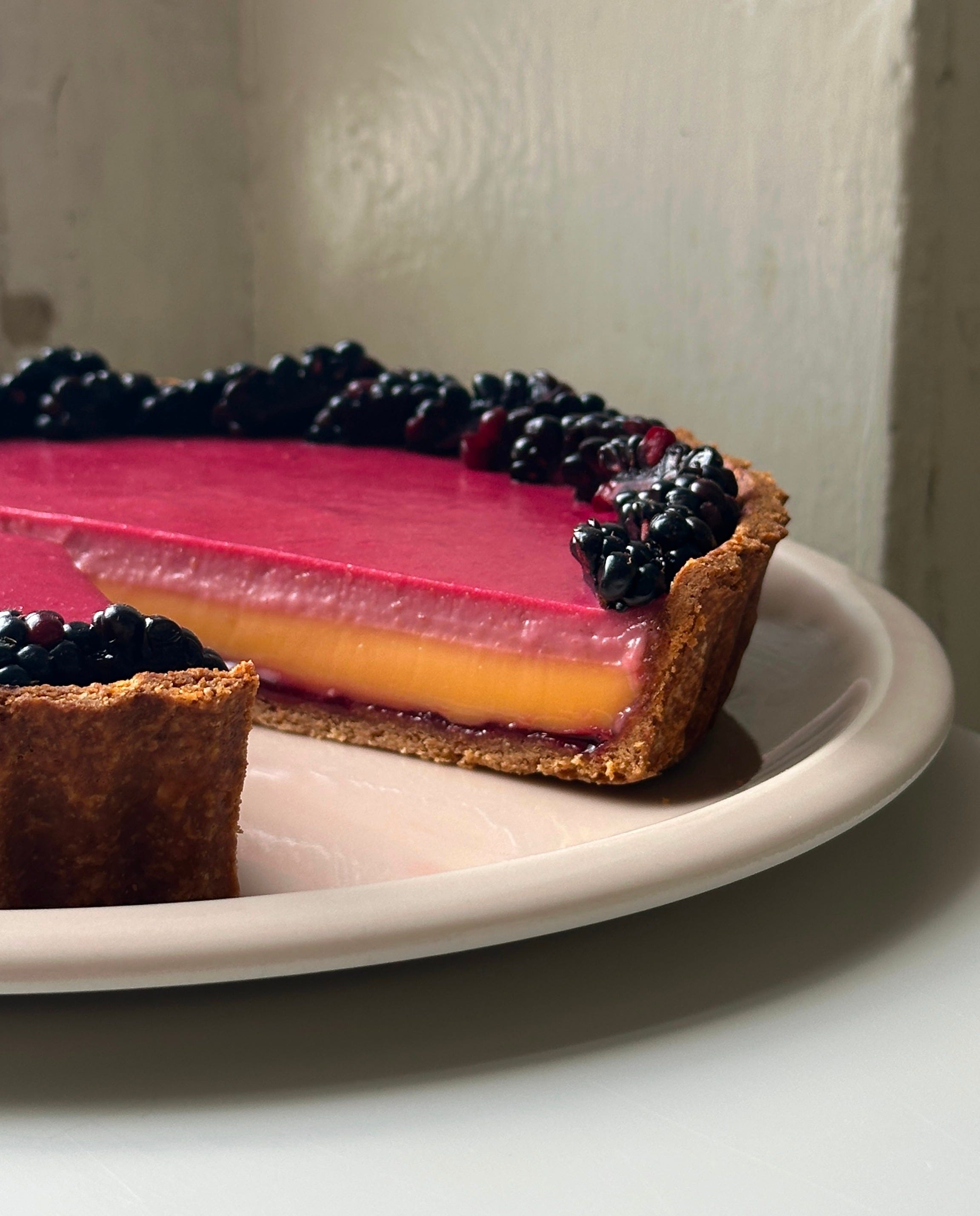 The damson was a huge success, bigger than I’d expected! A brilliant tang and texture and the colour… the colour! I’ve worked this into the level-up version of the tart which you can find on KP+ now.