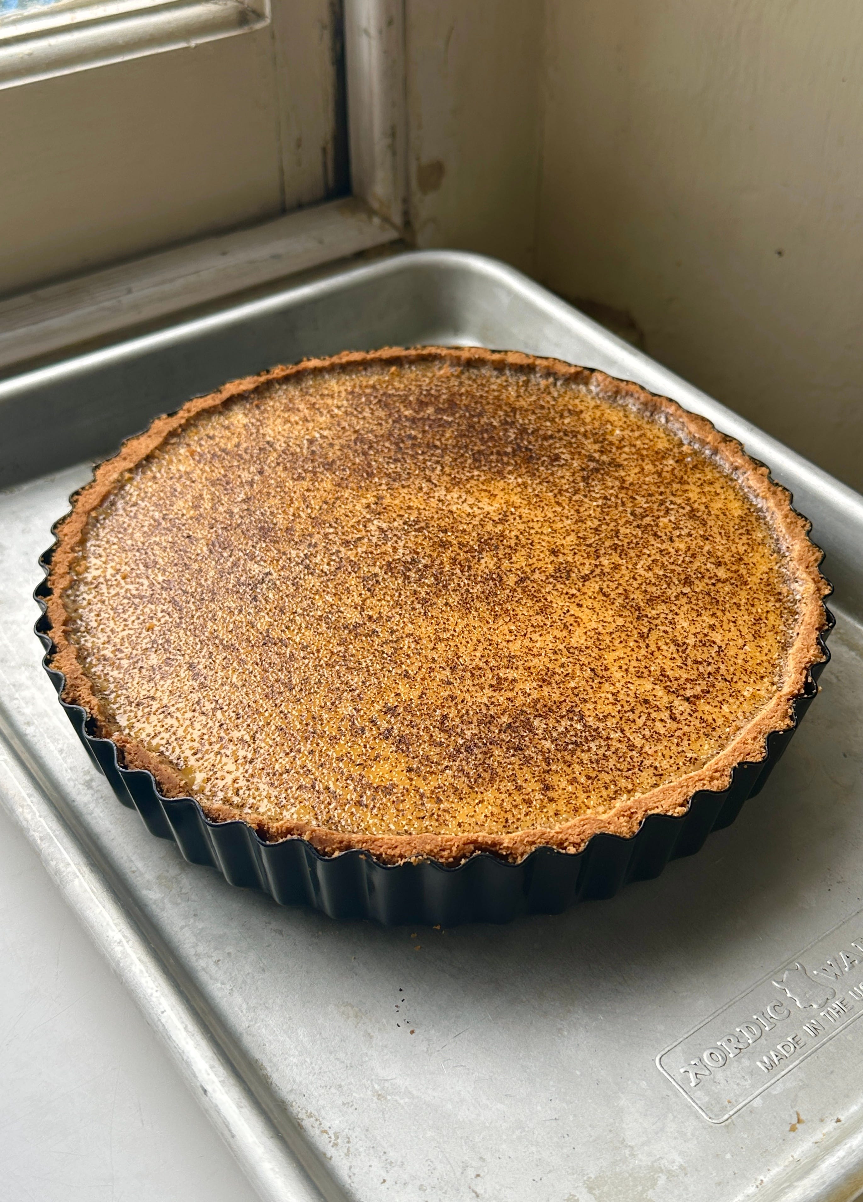 The tart looks beautiful! Living outside of the UK, sourcing double cream is not easy. In Italy, there is a tart called torta della nonna which is basically a baked custard tart as well, but to set it they use starch (usually rice or corn) and has only milk not cream. I was wondering if that might work here. And I would love to see your version of torta della nonna, if you are up for a challenge!! It's one of my favorites but quite tricky to master.