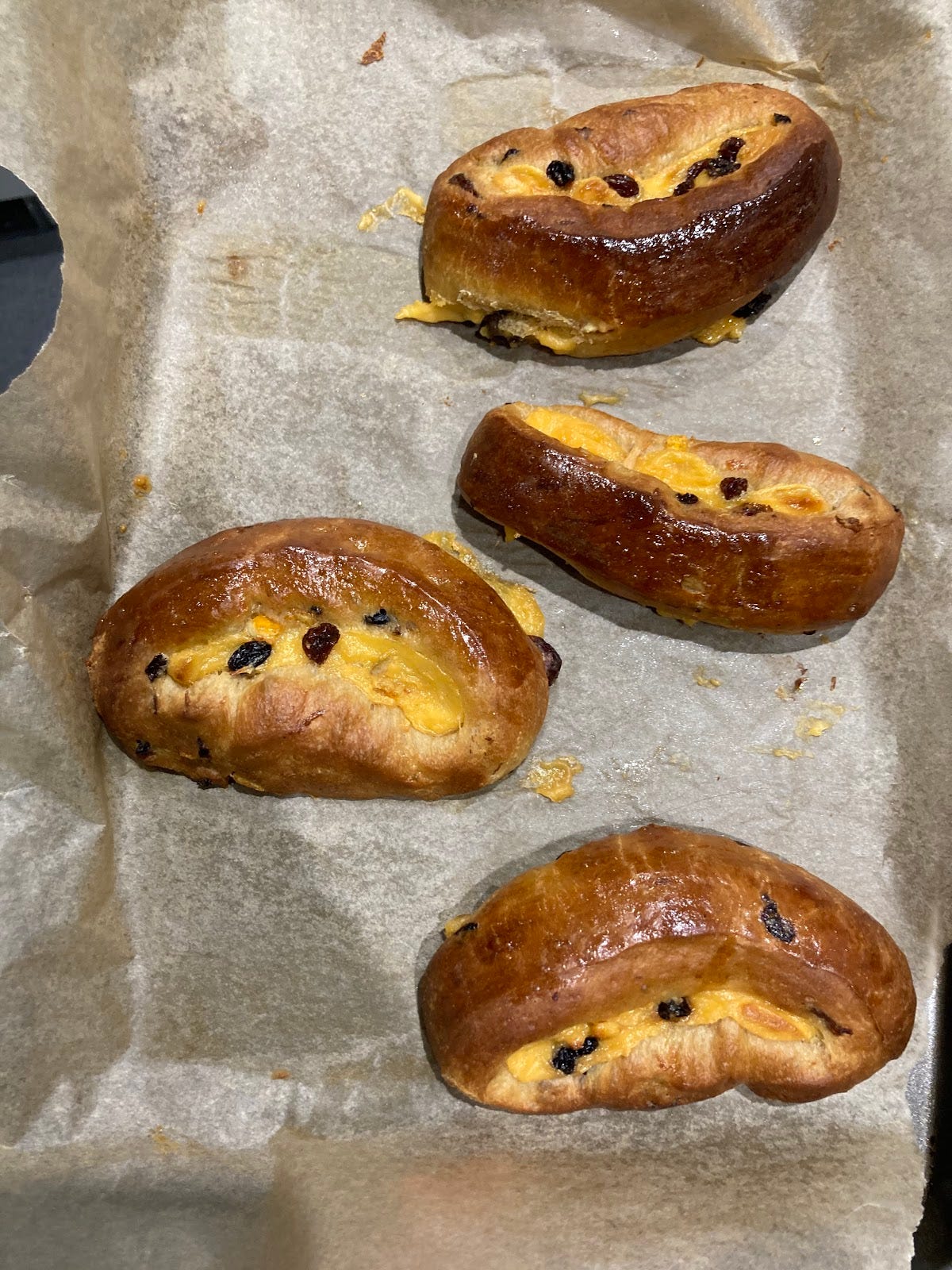 So, I decided to give it a go: a hot cross bun esque dough - with much less fruit and peel – and finished with custard, more fruit and more peel.