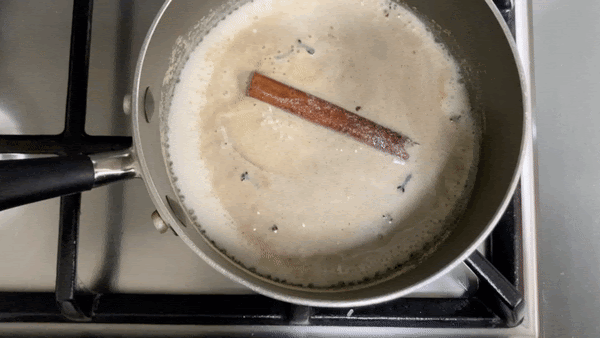 Add spices and aromatics to milk and bring to a simmer