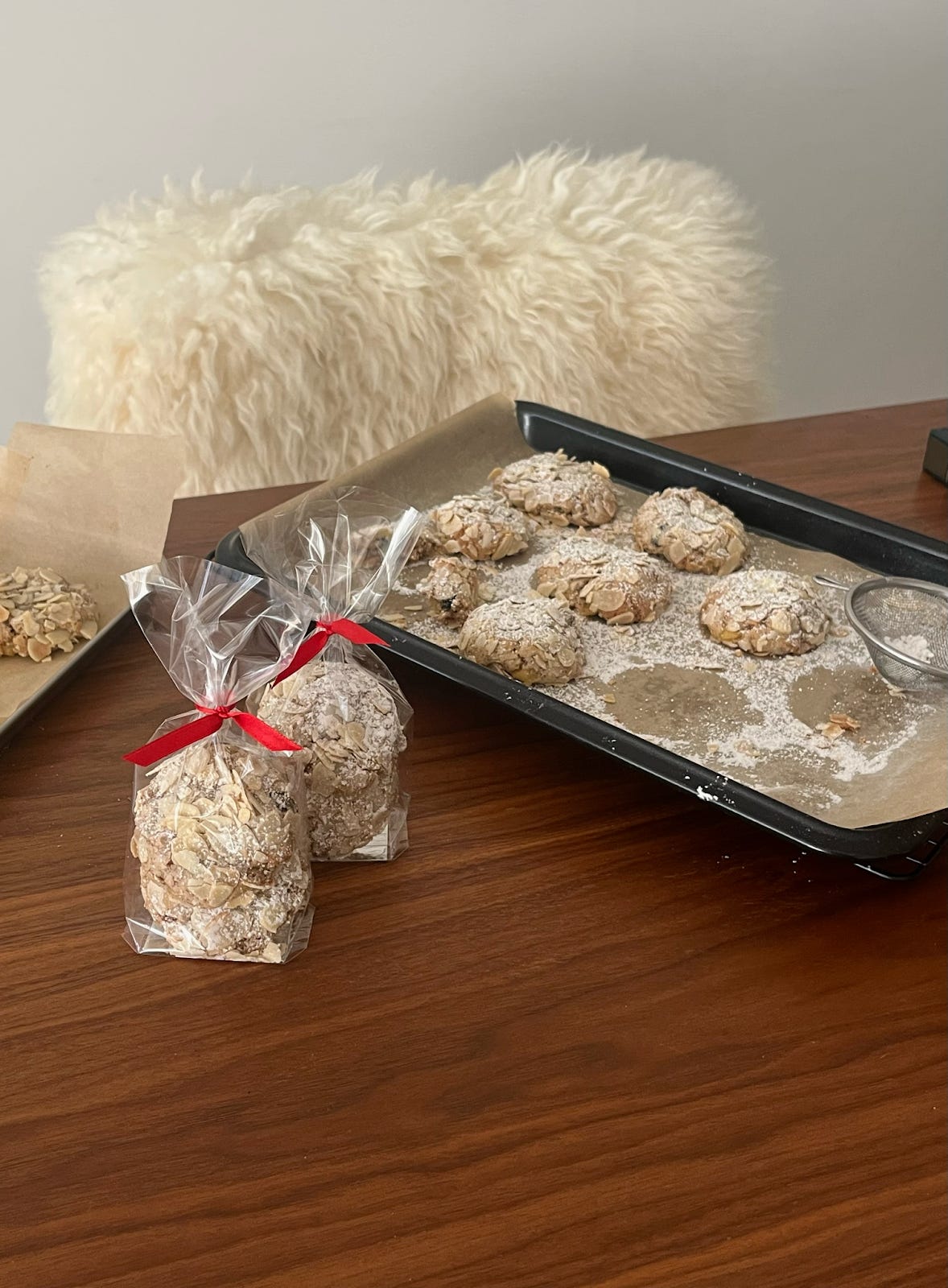 Rolled in flaked almonds, lightly dusted with powdered sugar, and baked until golden at the edges, these cookies have a soft interior and a deeply satisfying, crunchy exterior, ideal for pairing with an espresso or a glass of dessert wine. Whether you’re baking gifts for Christmas or simply craving something sweet, these cookies are a perfect option.