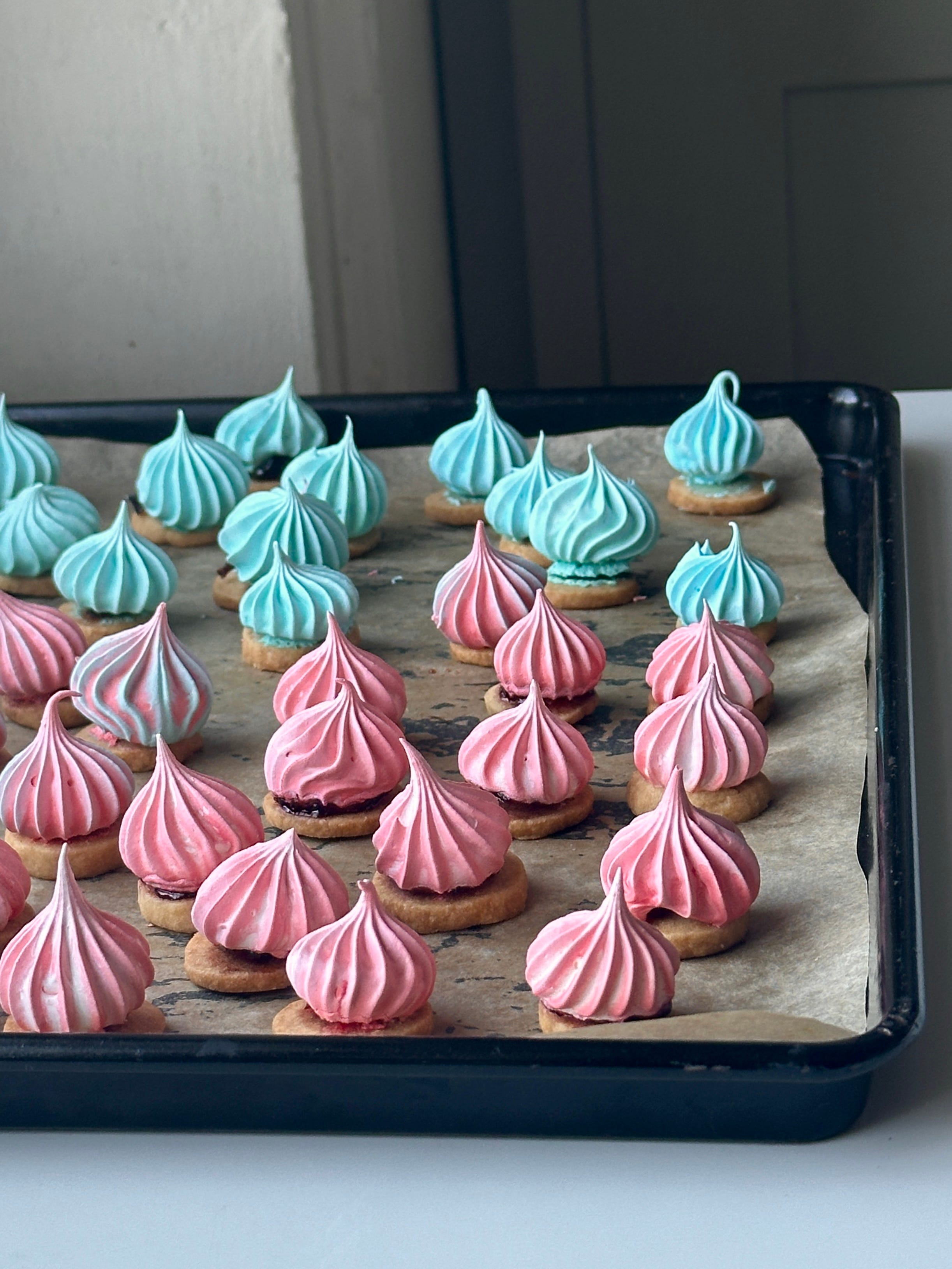 Last year, I was inspired by iced gems for a variation on the theme - Mont Blanc iced gem with a chestnut shortbread. This year, missing a bit of colour in my selection, I decided to revisit the concept and recreate them a bit more faithfully. For the uninitiated or unfamiliar, iced gems are a staple of British packed lunches – they combine a simple sugar cookie base with a swirl of royal icing in a few different flavours (though you’d never know they had a flavour other than sugar. Pls note there is no shade, only love.)