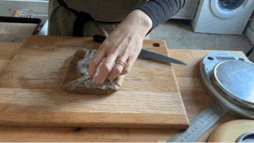 Form the dough into a square - 13x13cm and about 1.5cm thick - then wrap well and chill til firm.