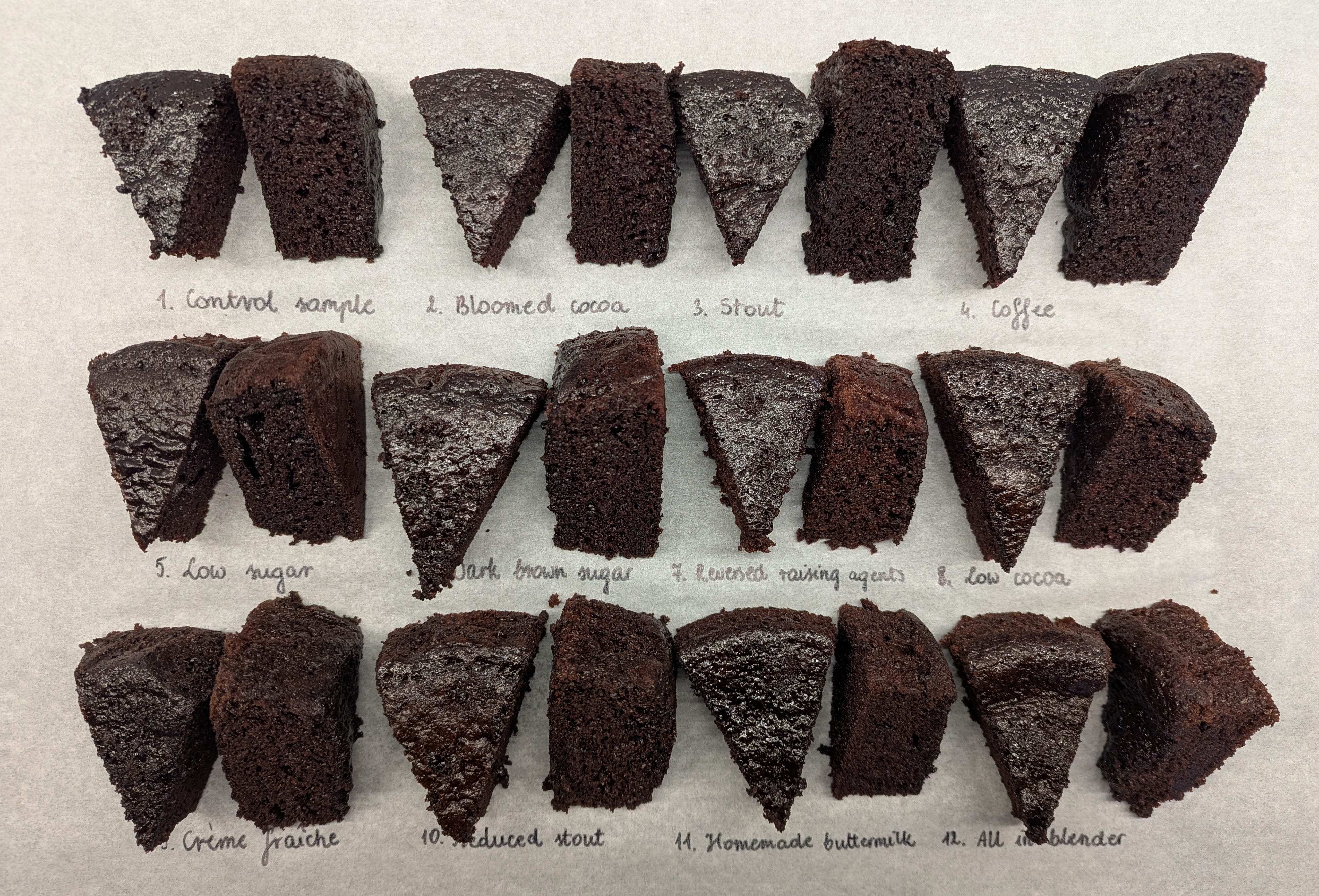 I began by making 12 different versions of the base recipe, each cake with only one variant changed. Here are my findings: