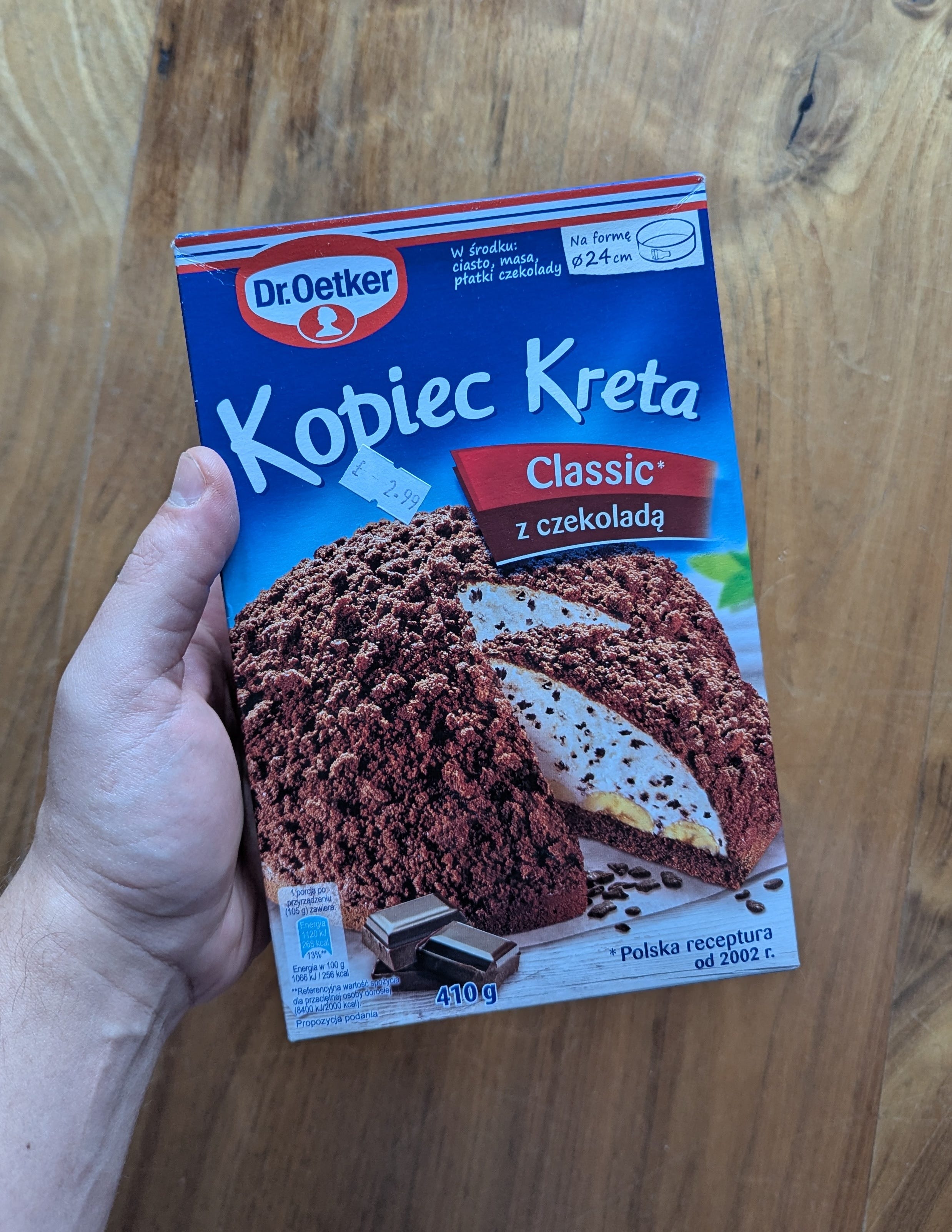 It was introduced to the world as a boxed cake mix produced by Dr Oetker, the German company best known for its baking powder (and other baking ingredients and decorations), cake mixes, and frozen pizzas. It first hit the shelves in Germany in 1999 under the name Maulwurfkuchen as part of a product line called “Trend Backmischungen” (Trendy baking mixes). In 2002, it made its debut in Polish supermarkets alongside two other cakes with equally creative names: ‘Kilimanjaro’ (Molehill’s close sibling, which replaced bananas with tinned peaches) and ‘Blue Lagoon’ (an unhinged cousin with blue jelly, chocolate palms and dolphins).