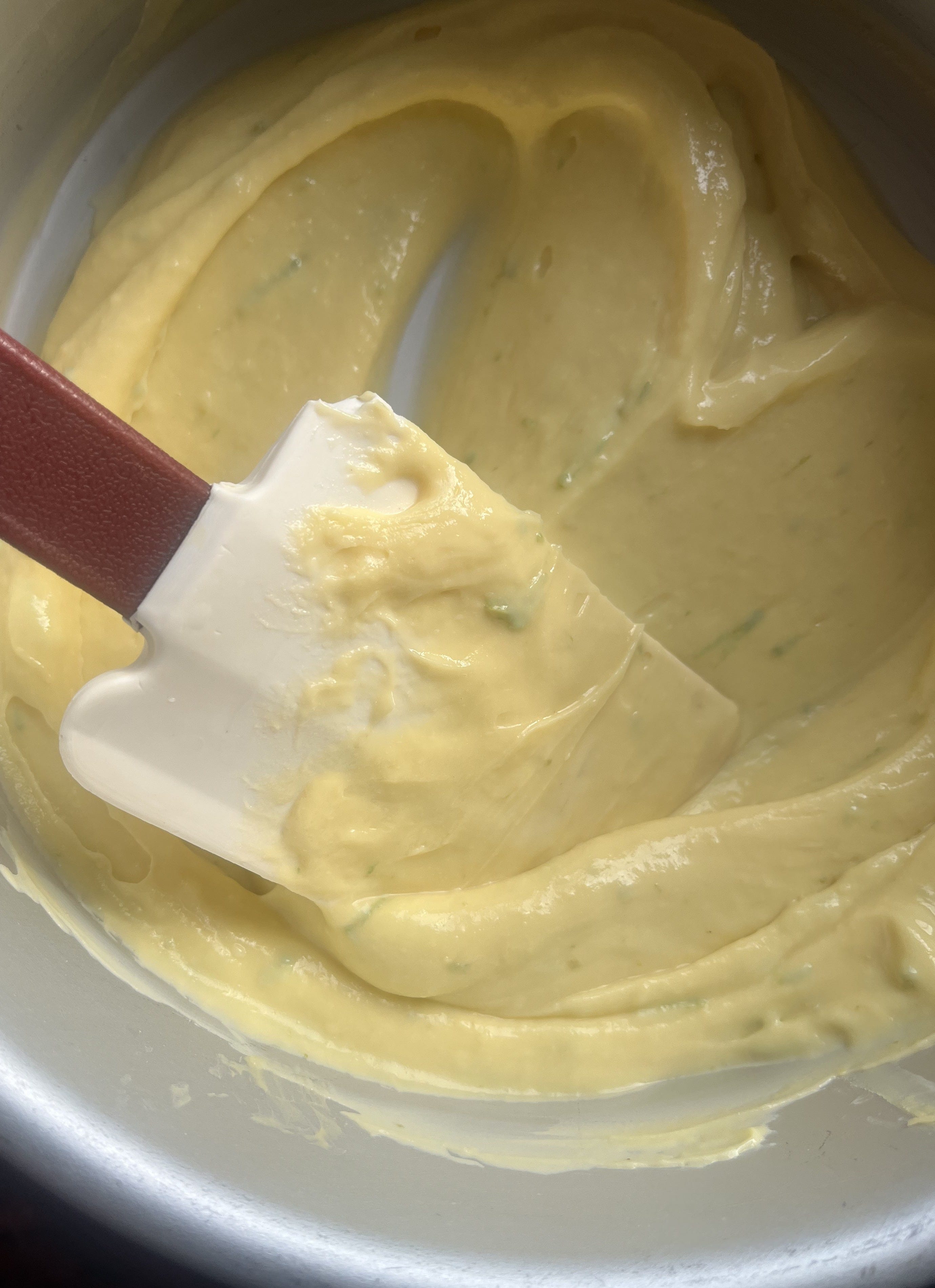 The great Stella Parks has a German cream cheese buttercream. She relies on a pastry cream thickened with a quite high percentage of cornstarch (11%) and whole eggs as the base. The result is an almost bouncy mouthfeel. I wanted something a little softer and more yielding, more akin to my beloved Swiss meringue buttercream in texture.