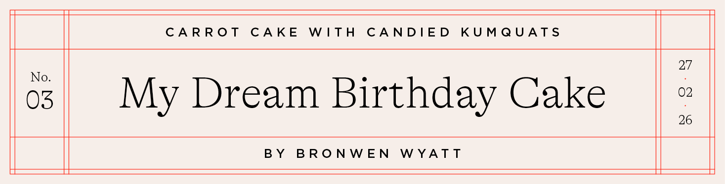 Today, we have a brand new edition of ‘My Dream Birthday Cake’, a rotating guest column all about birthday cakes. Today we welcome regular columnist Bronwen Wyatt, the brilliant New Orleans-based baker, recipe developer and writer, to tell us all about the birthday cake of her dreams: Carrot Cake.