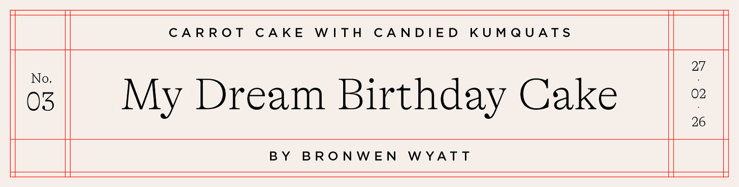 Joining us today is New Orleans-based writer, recipe developer and baker Bronwen Wyatt, also known as ‘Bayou Saint Cake’. I first came across Bronwen’s work via her Instagram page, which continues to thrill and inspire bakers (including me) around the world — known for her signature squiggles, artful composition and balance of flavours, I’m so thrilled to get to publish Bronwen’s Dream Birthday Cake right here on the newsletter. I’ve had so many requests for carrot cake over the years, and I just know that Bronwen’s version will blow us all away! So, shall we?