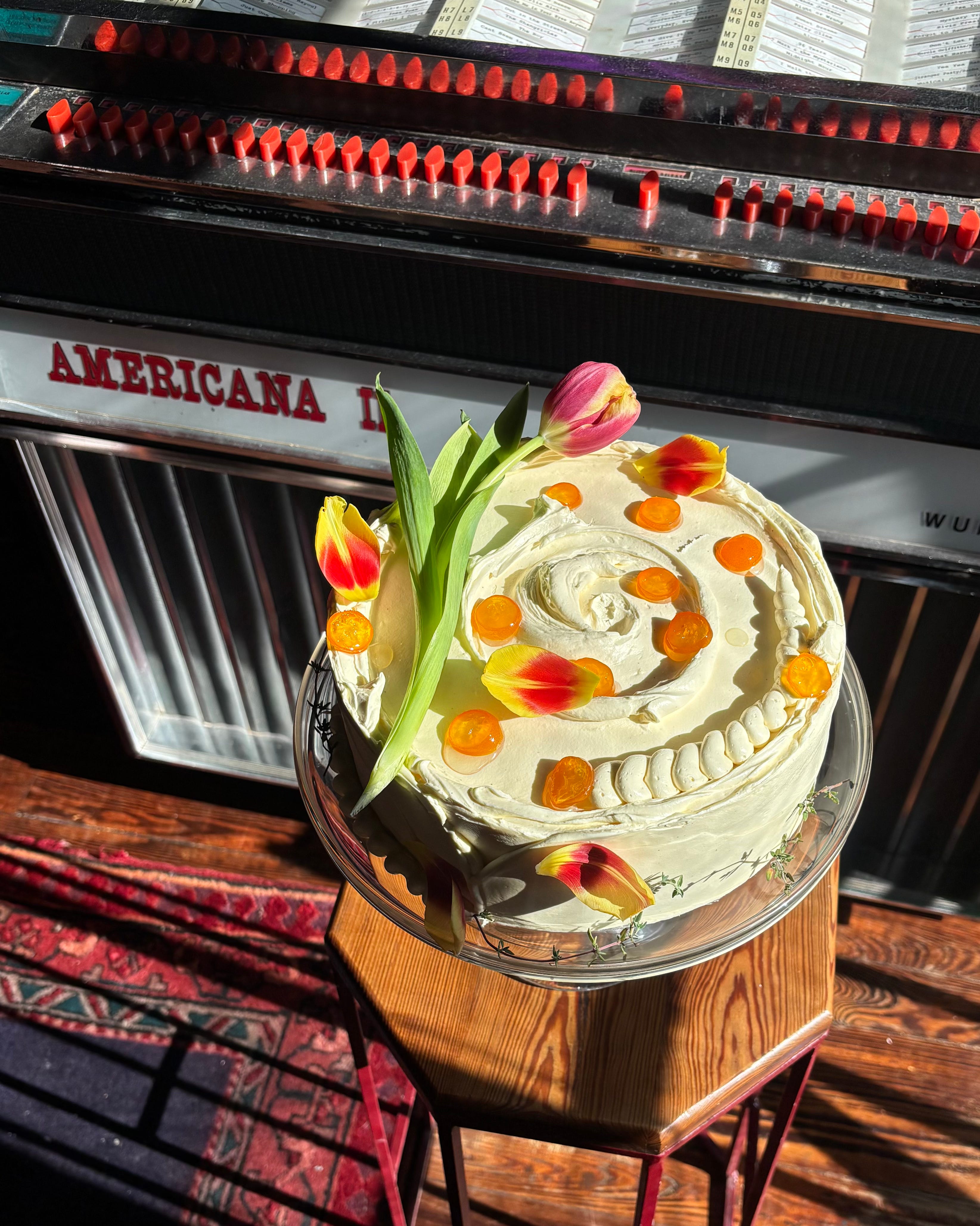Outerlands was like balm, filled with a sweet-natured crew of young people who were mostly making it up as we went along. We were led by then-owner Dave Muller, who had taught himself to make gorgeous sourdough bread with the simple dream of serving grilled cheese and soup to surfers coming off the waves of Ocean Beach. I made a handful of desserts each day, including a carrot cake that I paired with orange blossom and vanilla cream cheese frosting and candied kumquats. It became a beloved staple of my tiny dessert menu, and I’ve carried it with me ever since.