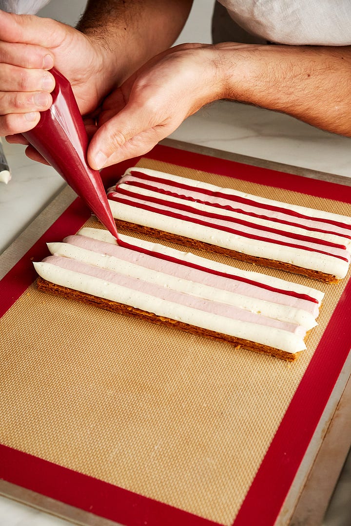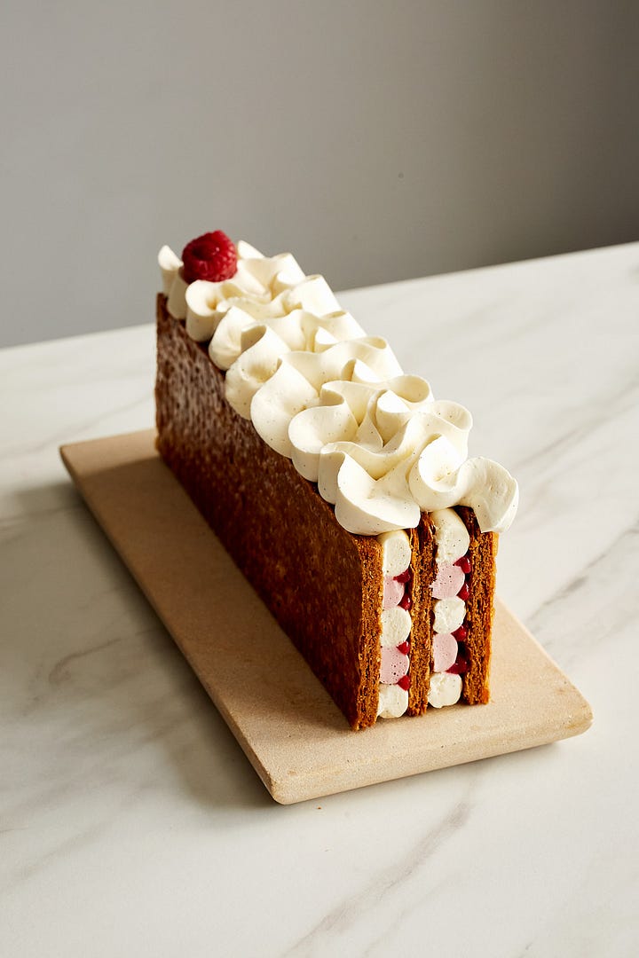 But it wasn’t always 3D printers and latticed mille-feuilles; By his own admission, Matt’s journey into baking has been “a long journey” that began with “taking my shirt off… filtering the life out of Instagram pictures” and “making wonky cakes” photographed “against my bathroom wall.” This candid approach to failure and humble beginnings has always appealed to me – I certainly feel like a perma-student, and this newsletter is built on the idea that the journey of recipe development (and, I guess, SKILL development?!?) is just as important as the final product. Matt hopes that he “can put all the failures to use”, a sentiment I wholeheartedly agree with.