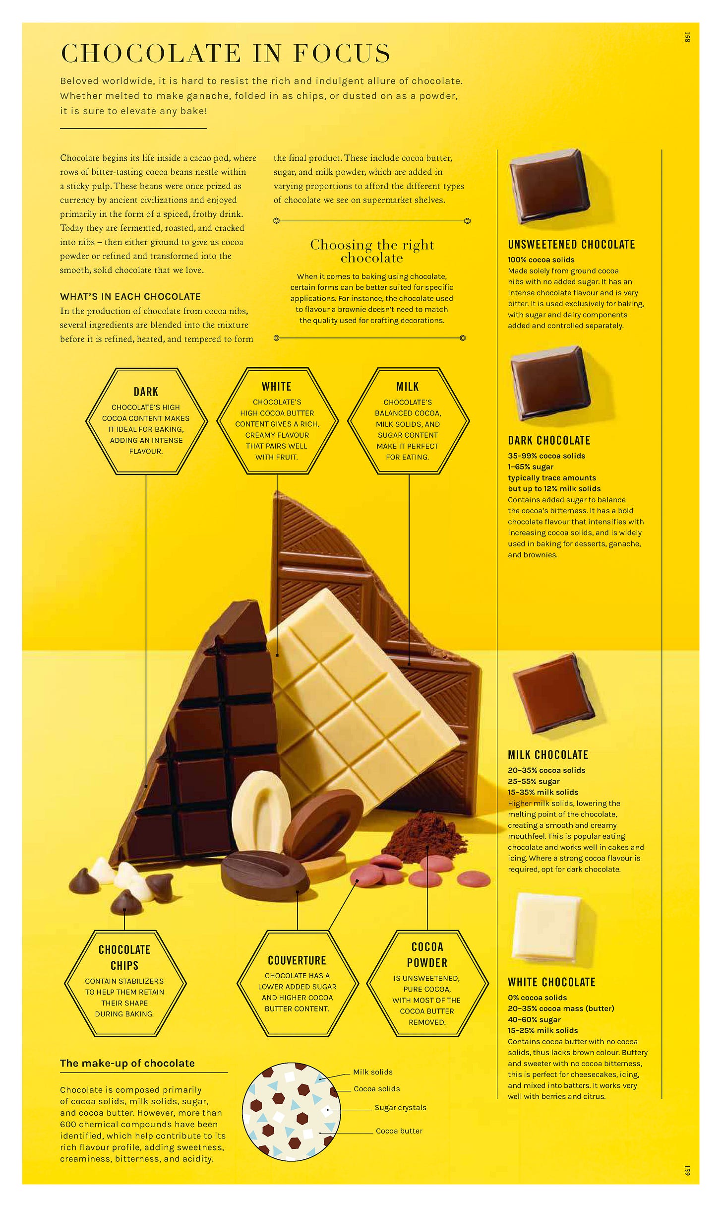 Matt: I’d write up my scientific text and intros, and he would go through and check that I hadn’t fibbed, basically. Or he’d add a layer of depth if something was missing. [Smalley] wrote a lot of the more in-focus sections on things like dairy, fats and chocolate. So we sort of swapped roles there – I’d sense-check what he was doing from a baker’s point of view. He also had access to this microscope at the University of Leicester – a 30,000-times zoom microscope — so those ingredient images in the book came from that!