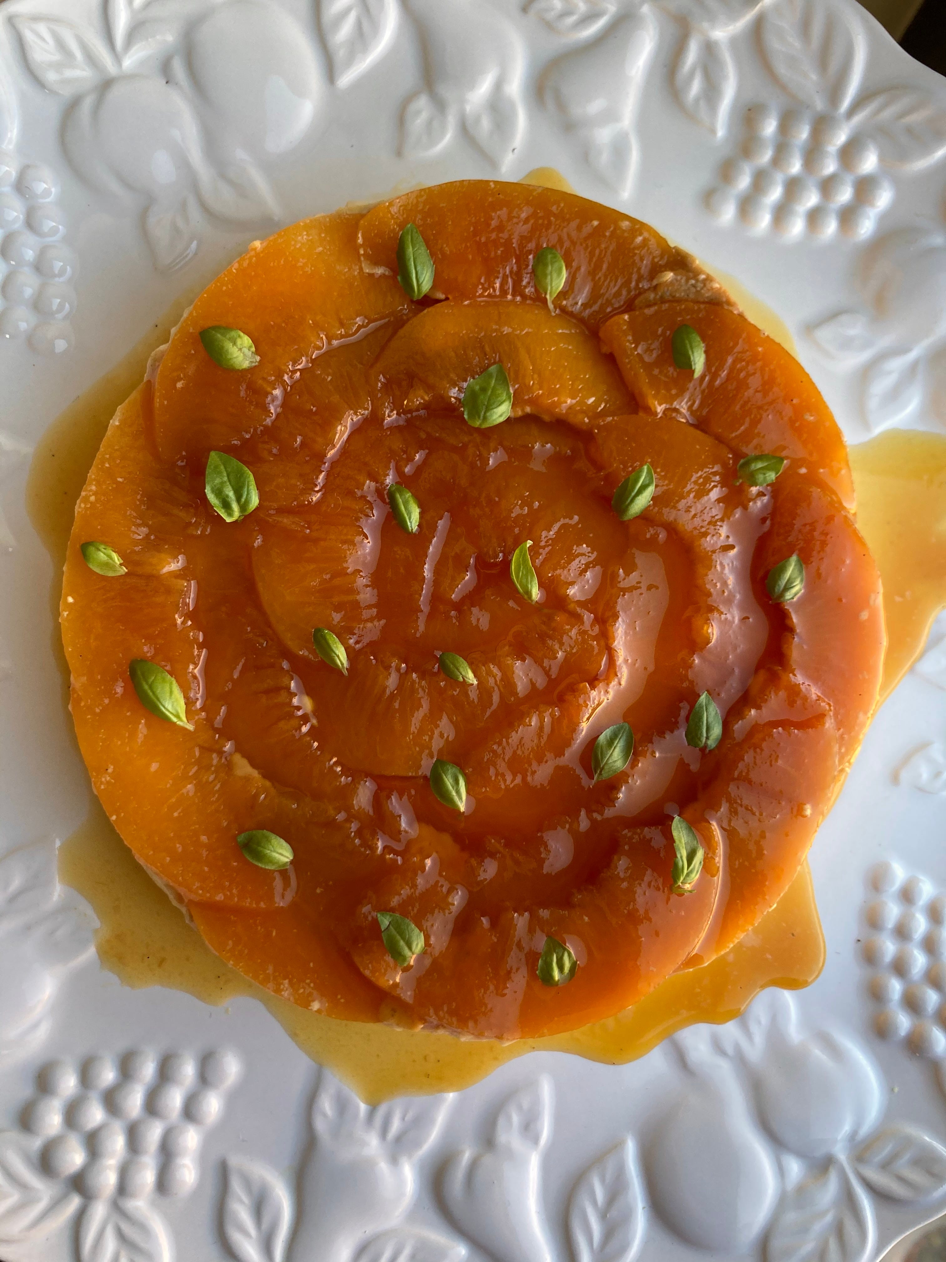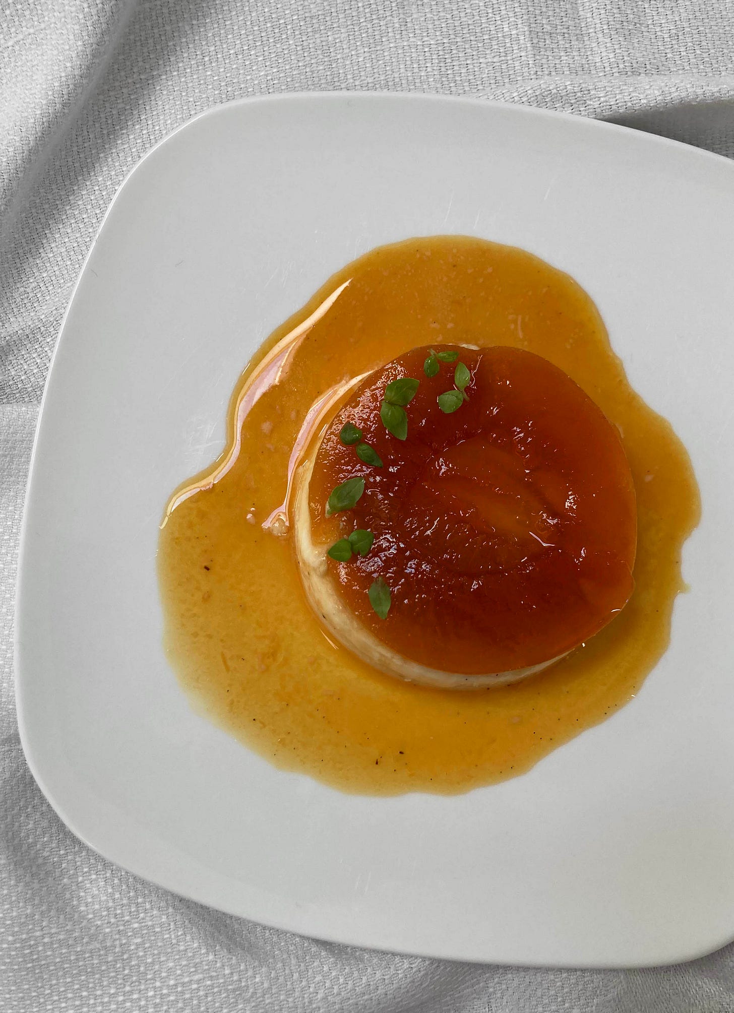 Peach and vanilla creme caramel