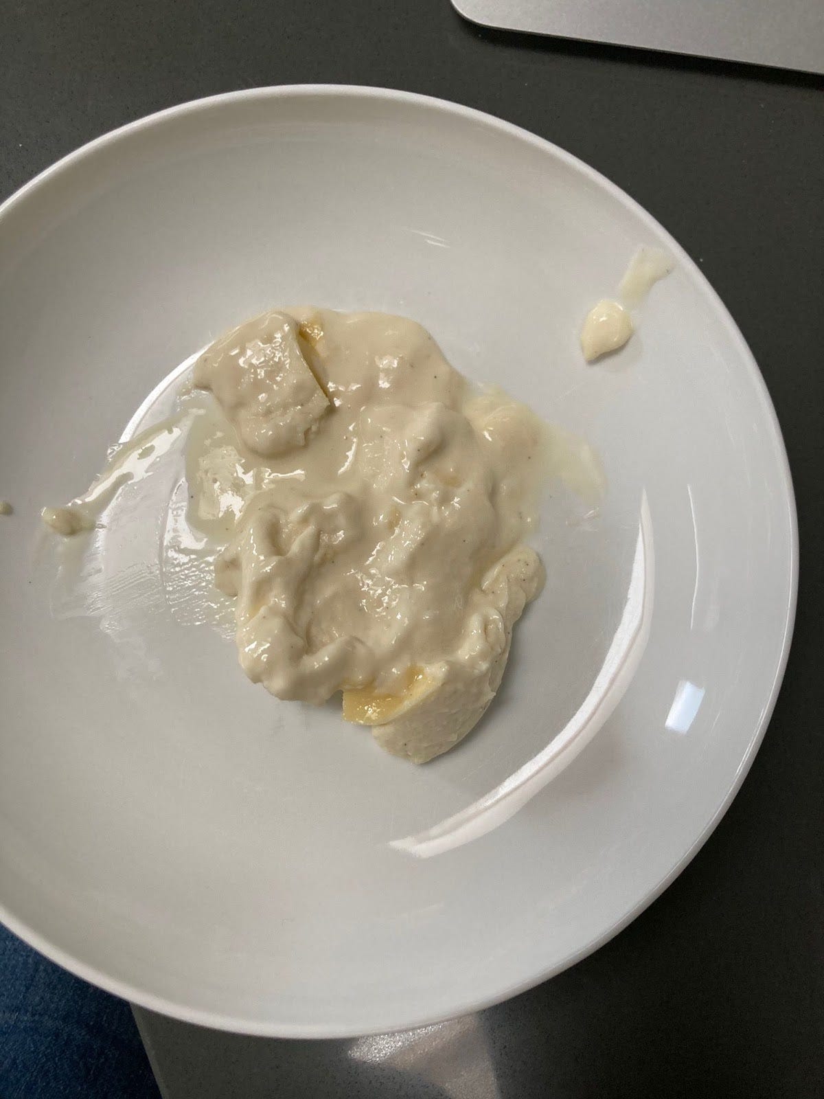 The flavour was nice, but because whites have zero fat, it’s really important to get a bit of fat from elsewhere otherwise the flavour is a bit lacking. So, although you can use a mixture of milk and cream in my final formulation, it’s sensible to keep a higher proportion of cream. Afterall, fat = flavour. Even though the bake was definitely my fault, I didn’t bother trying it again as the flavour simply wasn’t there.