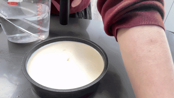 The final mix will also be poured through a sieve twice so there’s ample opportunity to get any unpleasant bits out. If you’ve got any concerns the rule is always pass it through the sieve again. Oh, and if you find that there are bubbles hanging around in your final mix, feel free to burst these with a toothpick or sharp knife before baking.