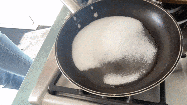 Heat sugar on a medium heat until totally melted. I don’t touch it at all! Once it is melted watch it - you want it to be dark. Be brave! It will be paired with cream and bananas so this is an opportunity for it to stand out